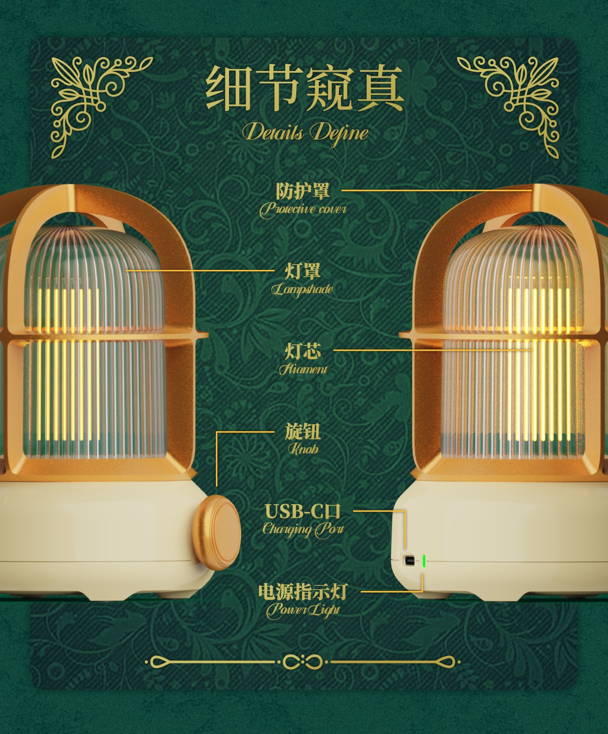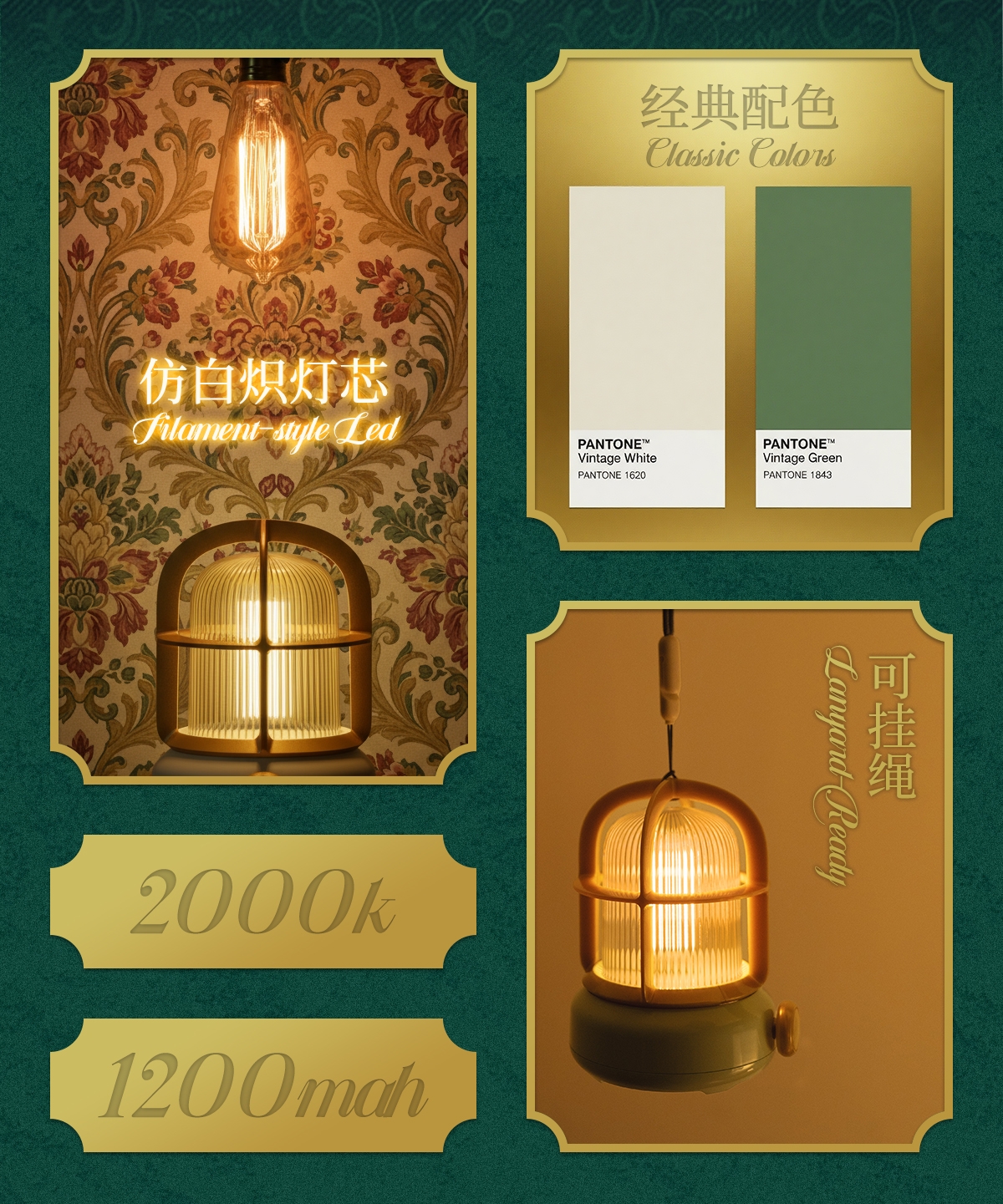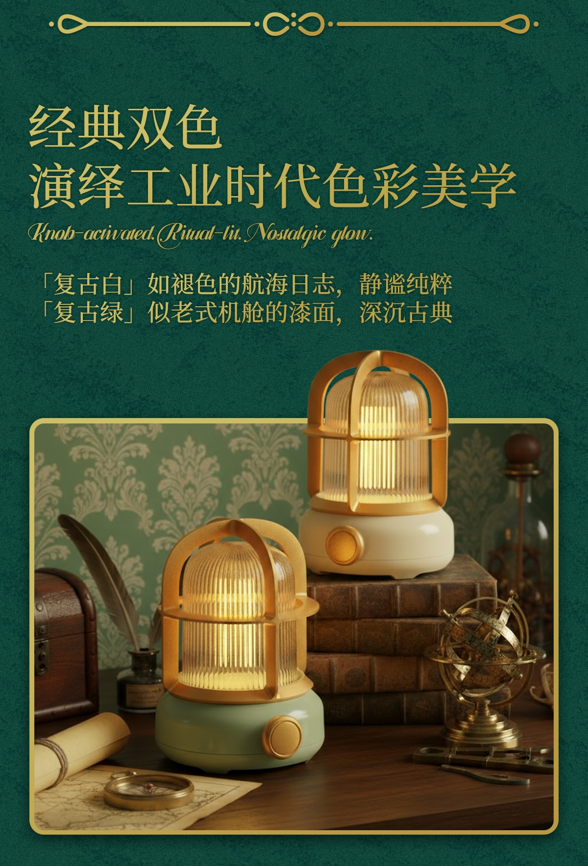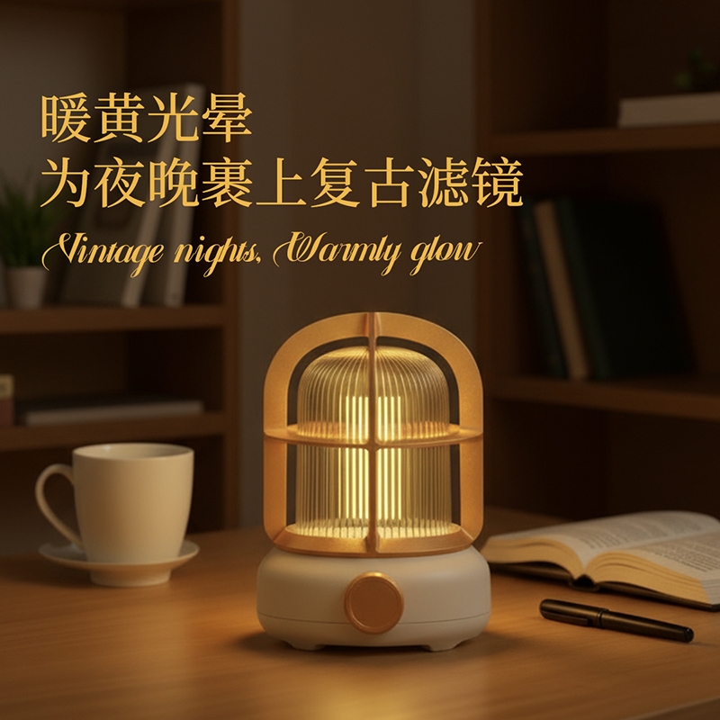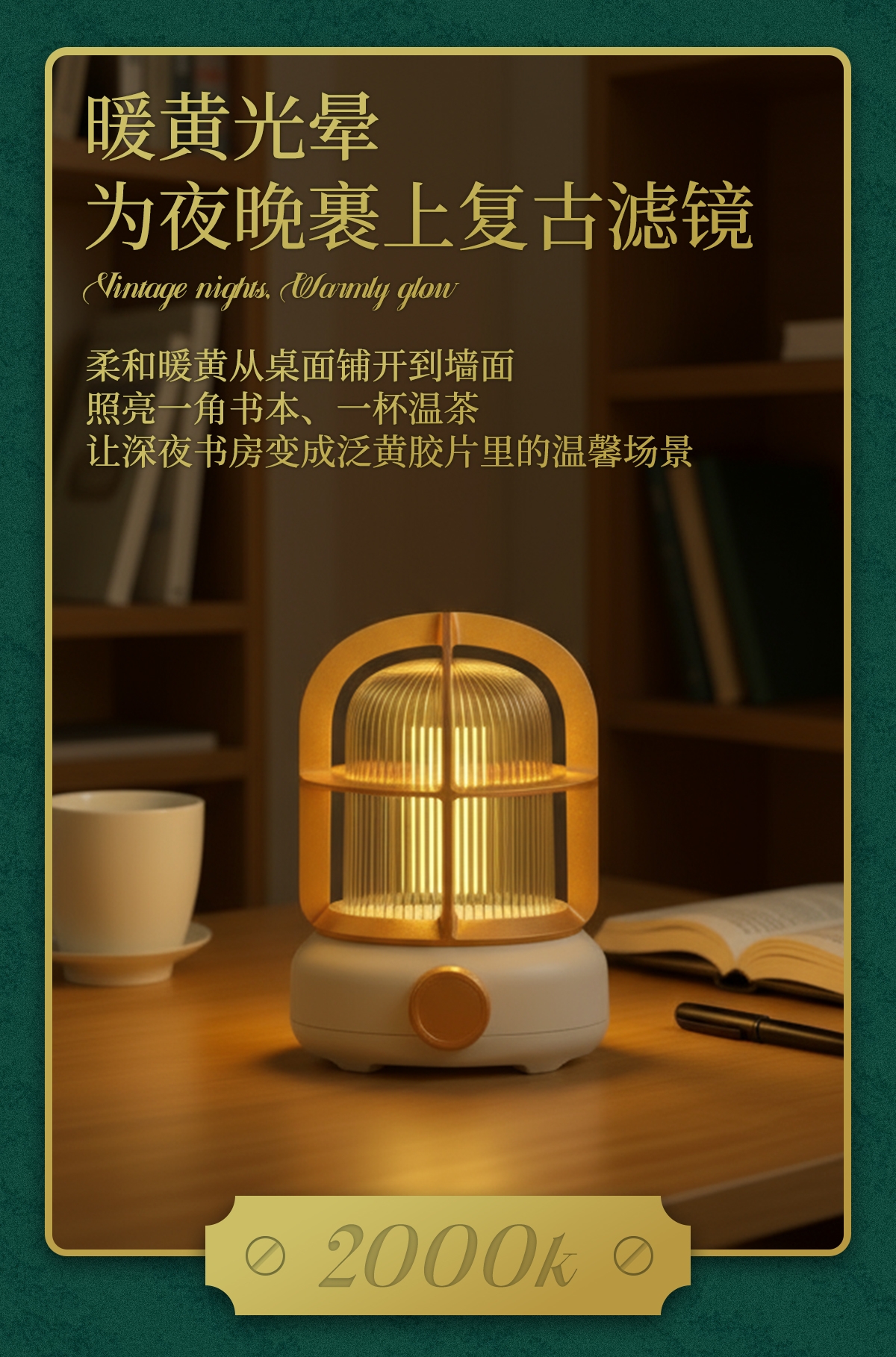 金属防护笼 + 竖纹灯罩复刻经典工业美学,自带怀旧;是一款实用的夜灯,也是不错的复古桌搭好物;2000K暖光,温柔护眼,可无级调光