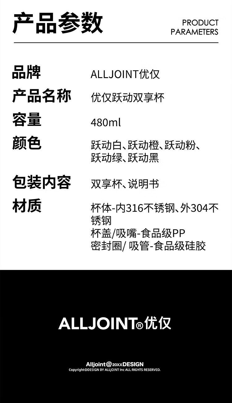 316不锈钢内胆,守护每一口纯净;480ml标准容量满足日常饮水需求;隐藏式吸管口,密封防尘