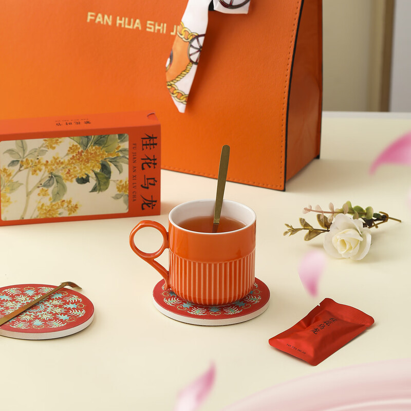 配置清单:2个陶瓷咖啡杯 2个杯碟 2个勺子 四盒茶叶