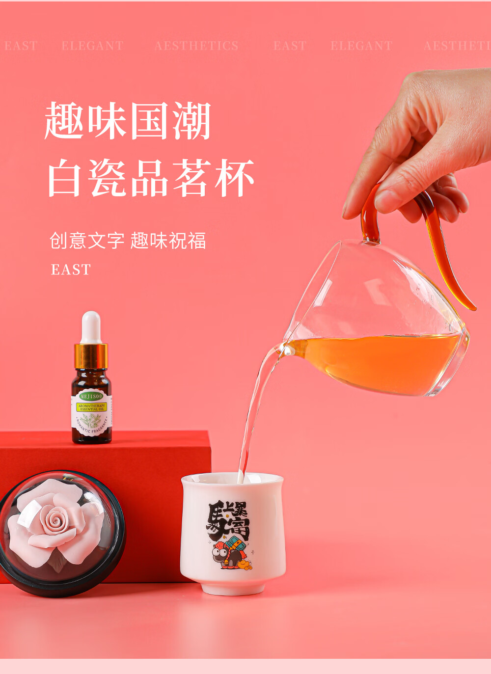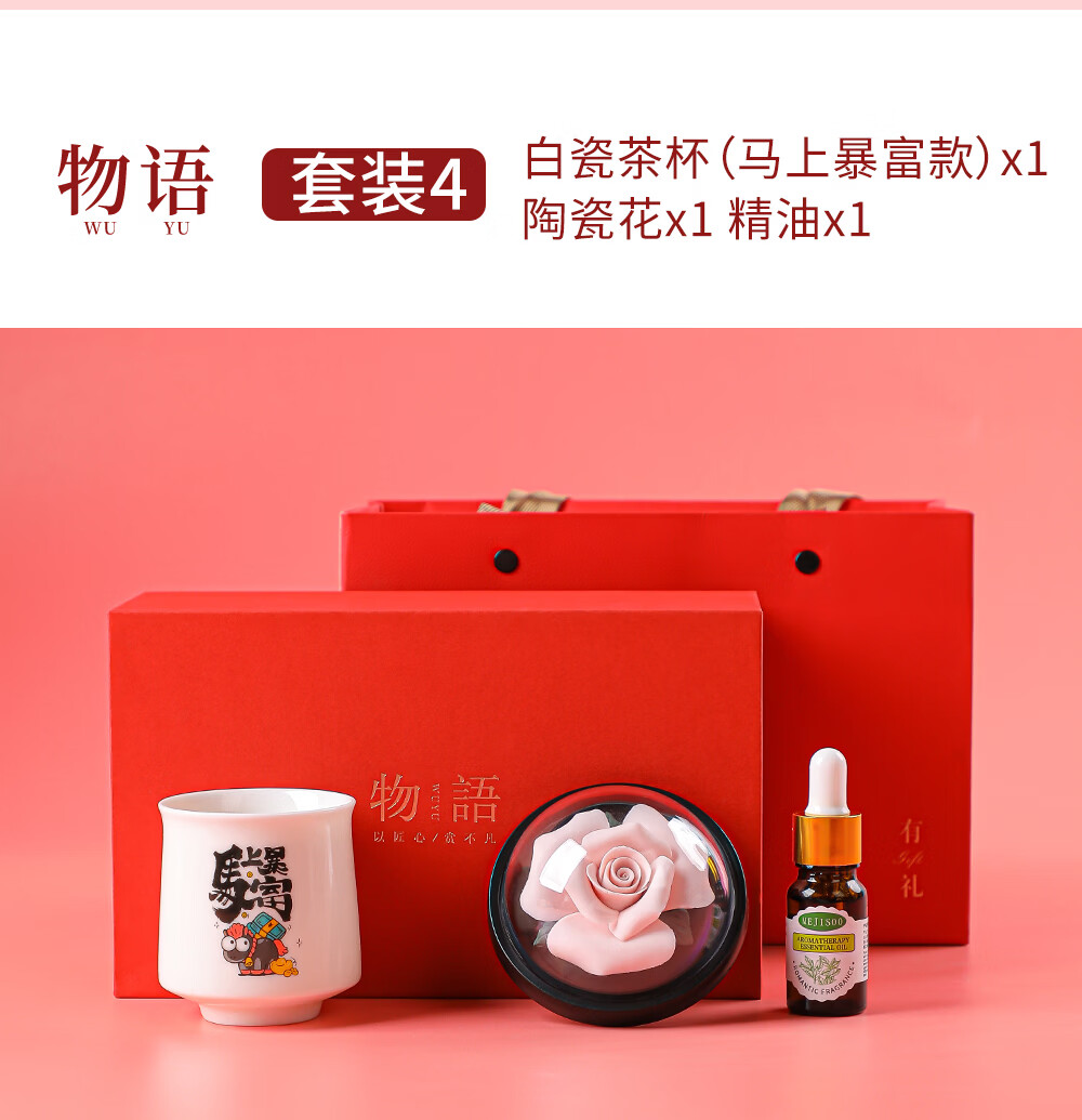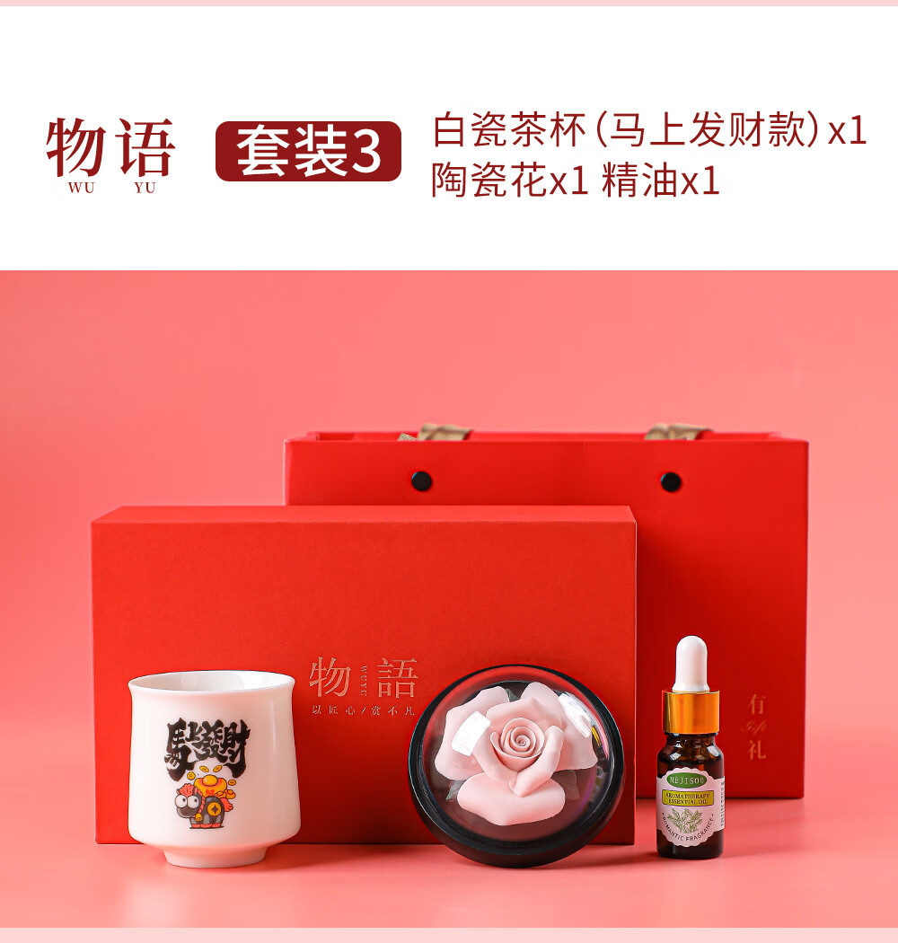 配置清单:品茗杯 陶瓷香薰花 精油 礼盒 手提袋