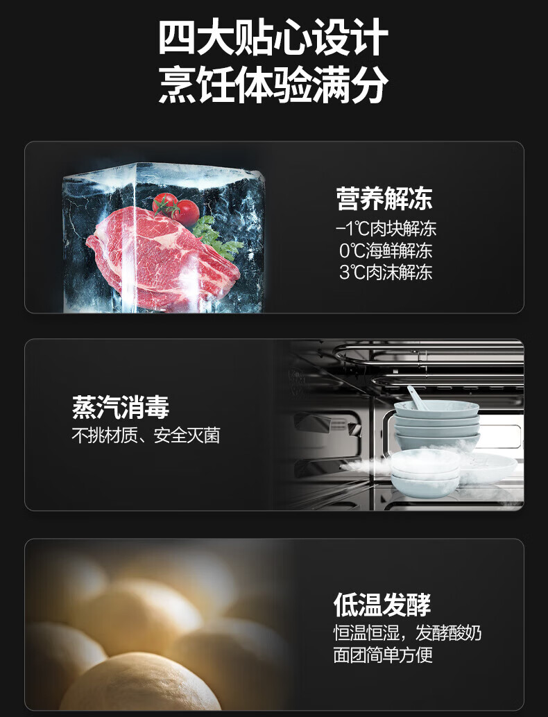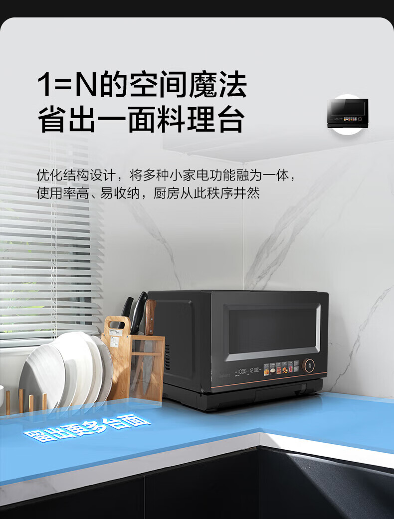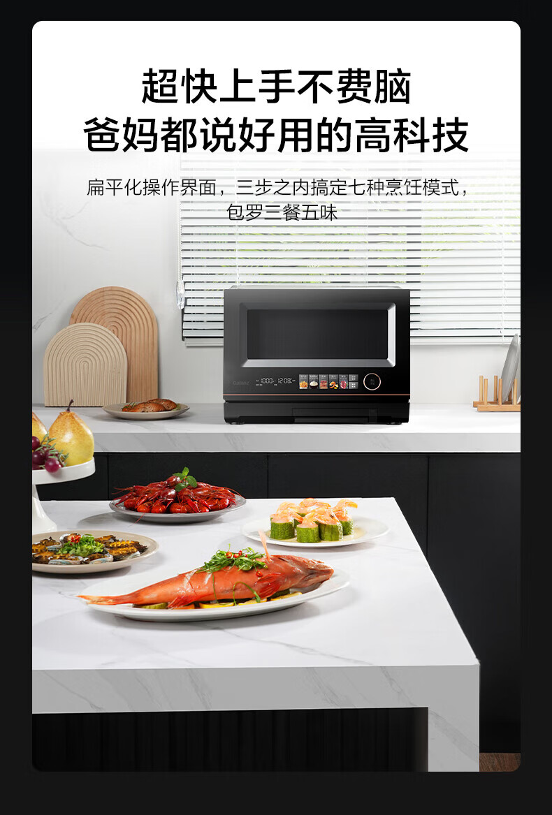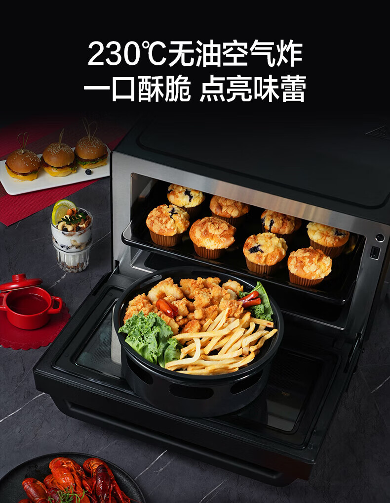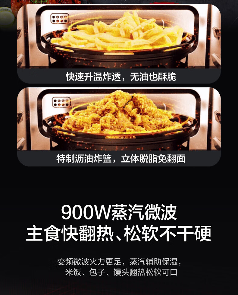 微蒸烤炸一体机;不锈钢内胆一级变频;智能优选菜单
