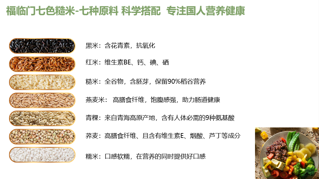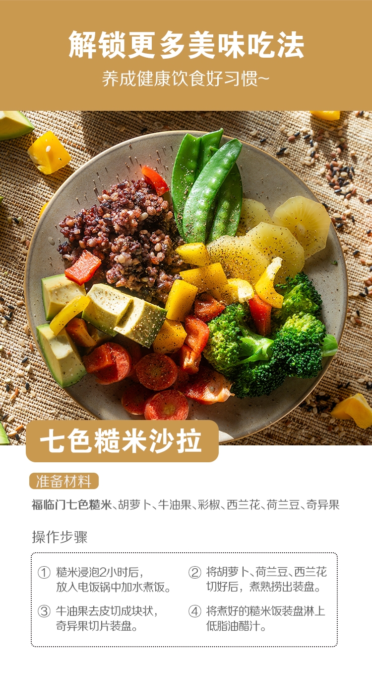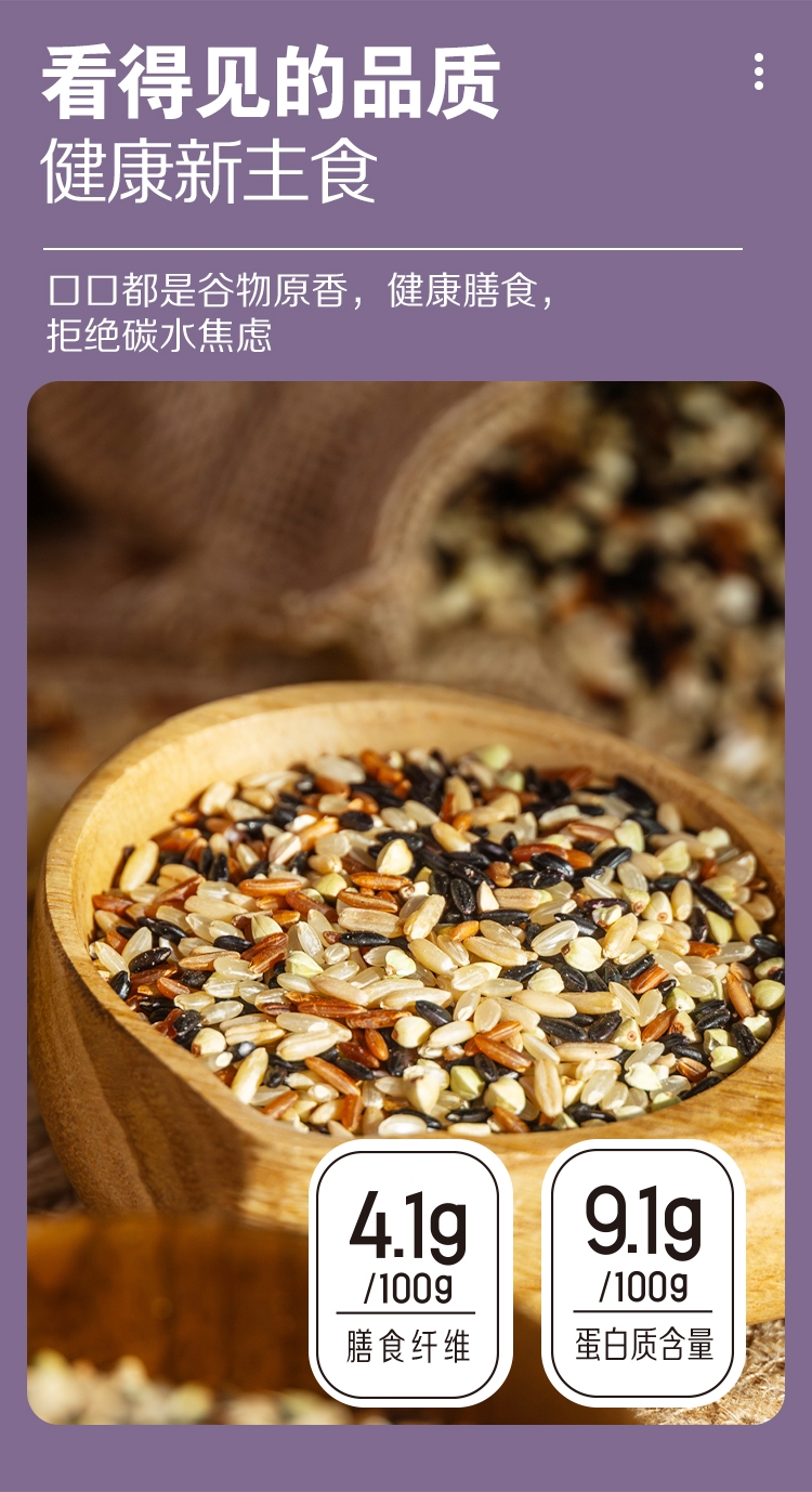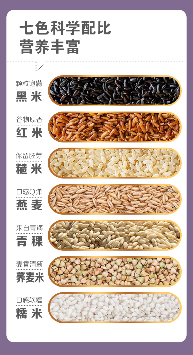 健康轻食、营养均衡,7种不同杂粮原料科学配比;兼顾营养和美味,减重控糖人士的理想主食;甄选优质产地原料,全产业链的严格把控
