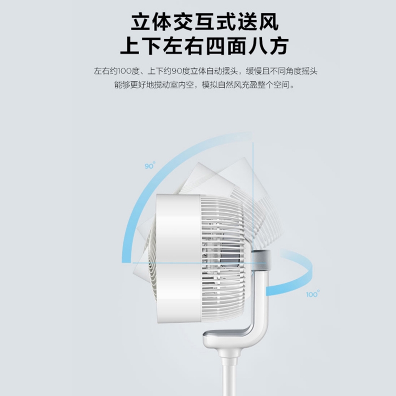 立体交互式送风,上下左右四面八方;15H定时,健康入眠;强劲涡流风束,激活全屋空气
