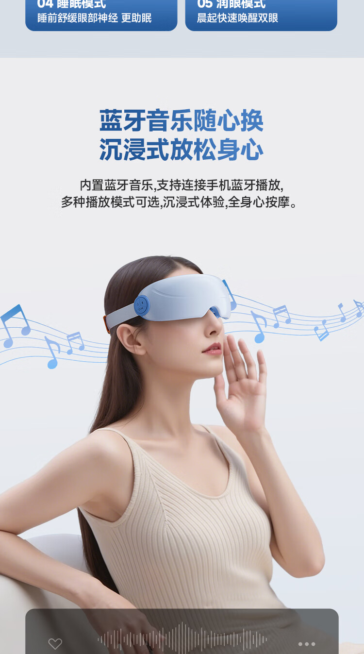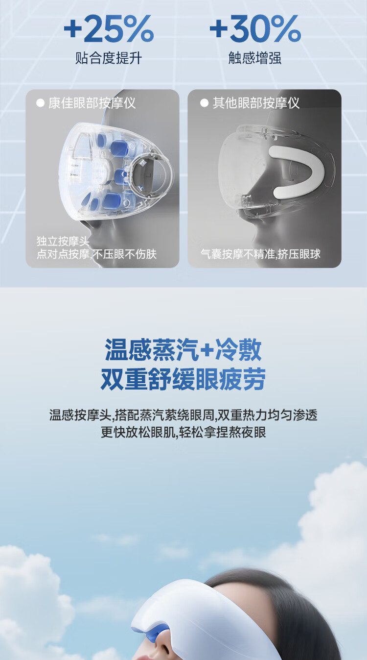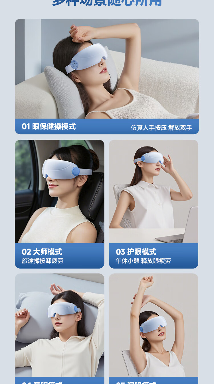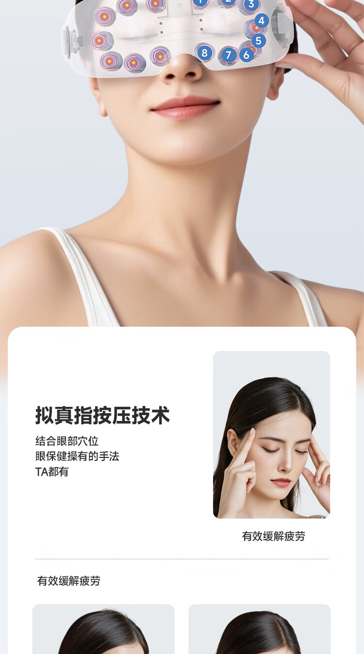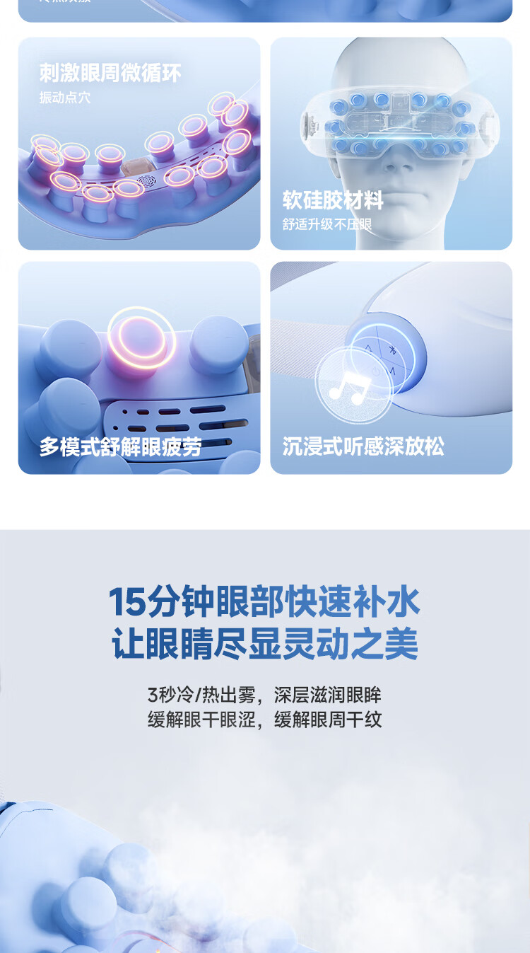 UV净护明眸,紫外线对可拆卸可视化水箱进行杀菌;软硅胶材料更贴合眼部周围,更亲肤。;可调节绑带,适用不同头部尺寸