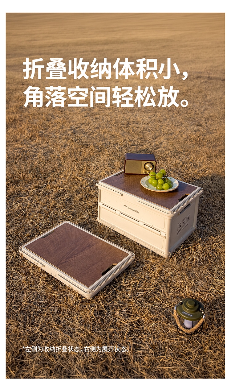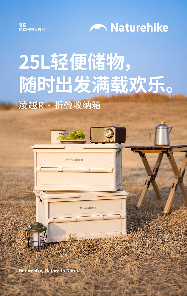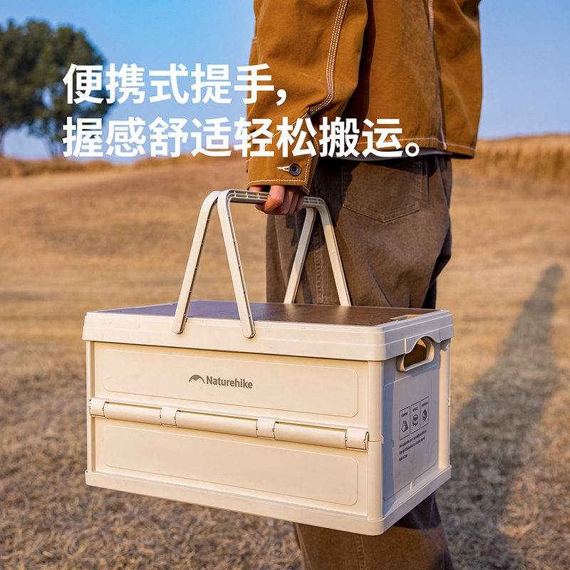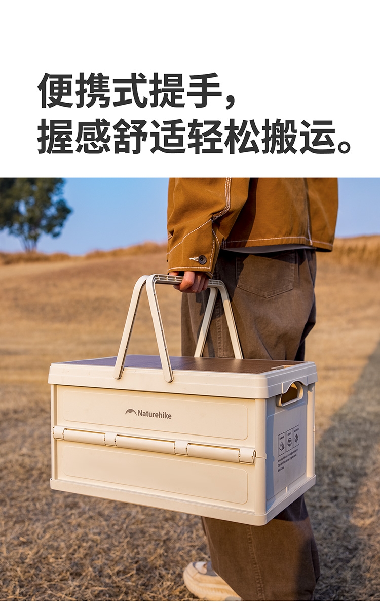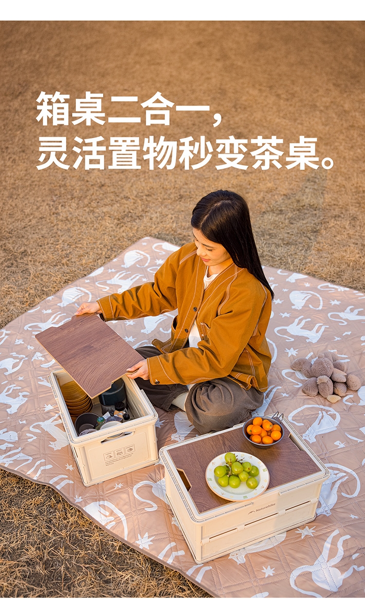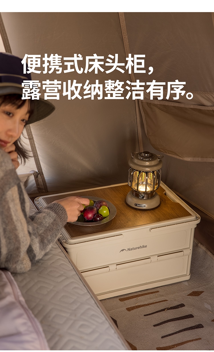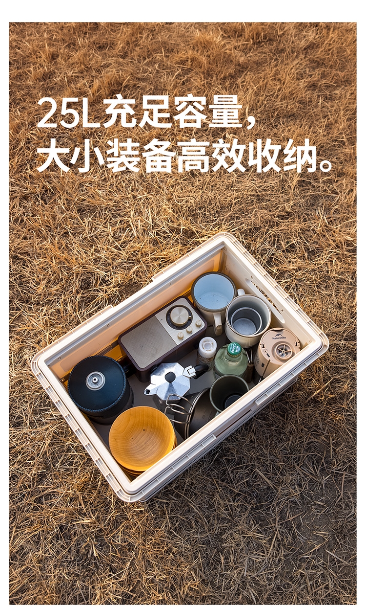 便携式提手,握感舒适,轻松搬运;25L充足容量,大小装备,高效收纳;箱桌二合一,灵活置物,秒变茶桌;多层可叠放,坚固耐用节省空间;便携式床头柜,露营收纳,整洁有序