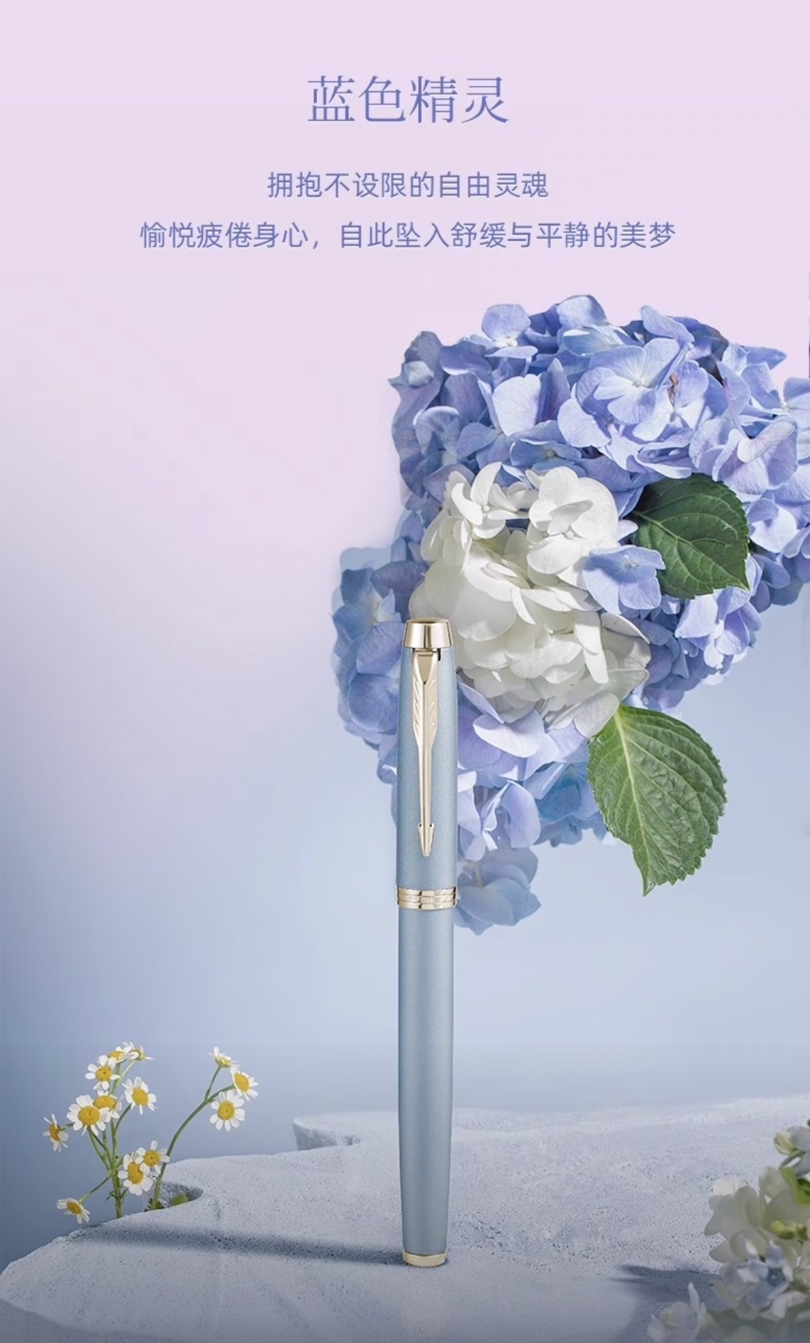 笔帽: 黄铜材质;铜质笔杆;绣球花艺礼盒