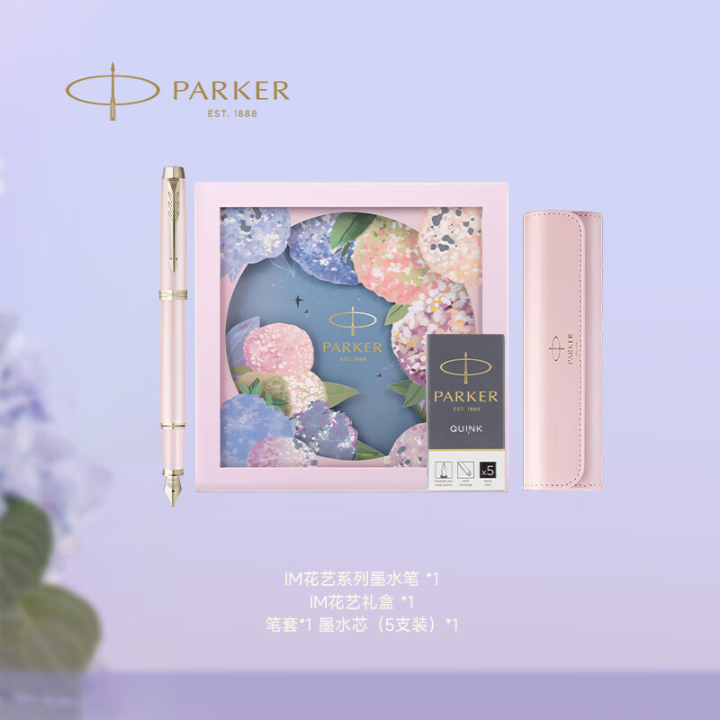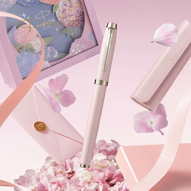 派克 粉色幻想绣球花艺墨水笔礼盒