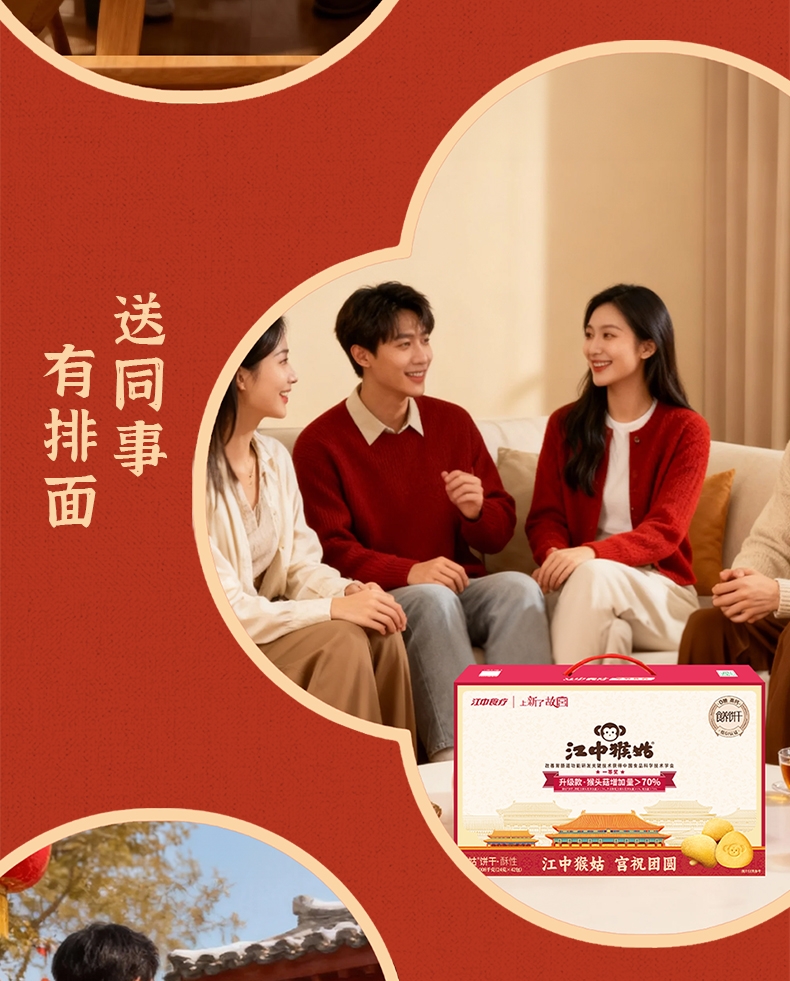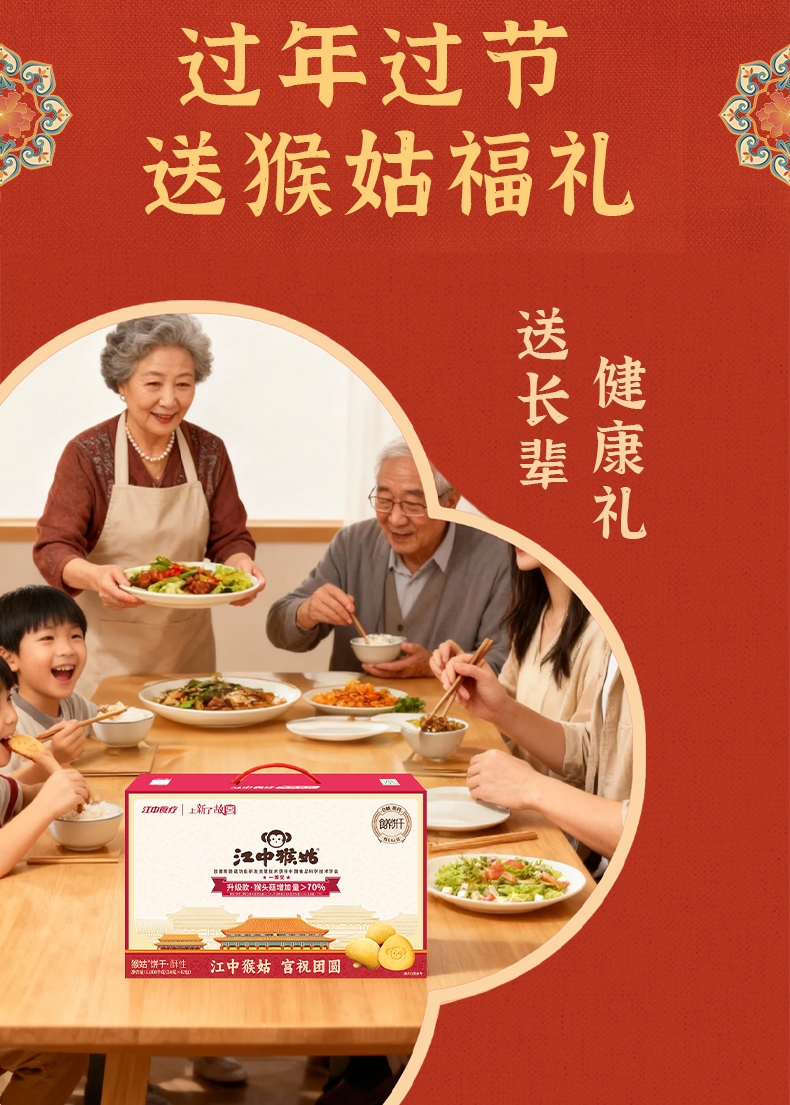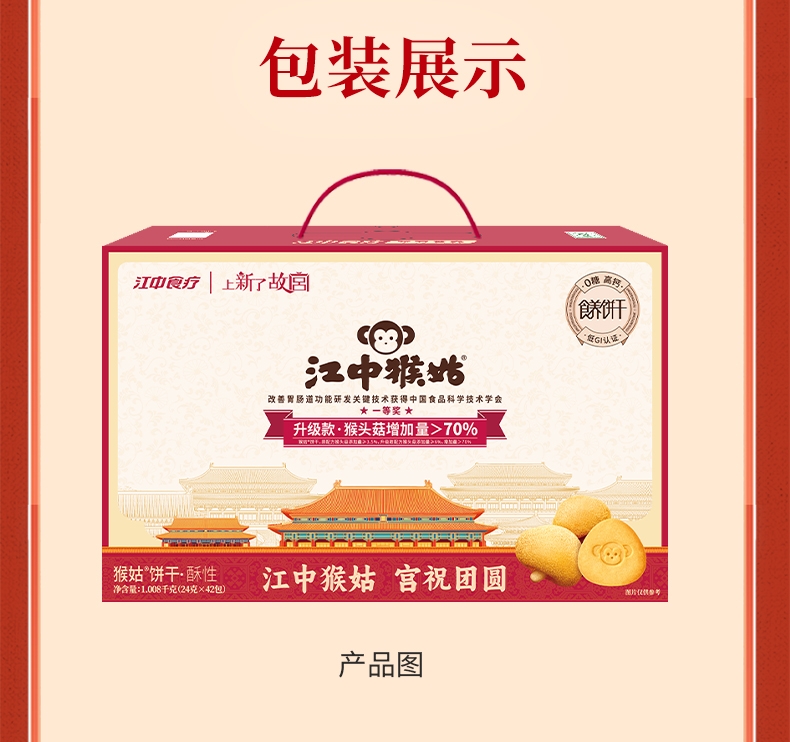 江中猴菇 0糖酥性饼干1008克手提礼盒