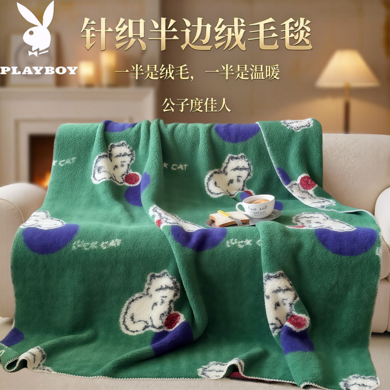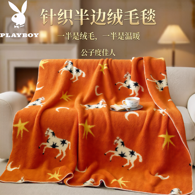花花公子 马年针织半边绒毛毯多功能毯子PLAYBOY-223