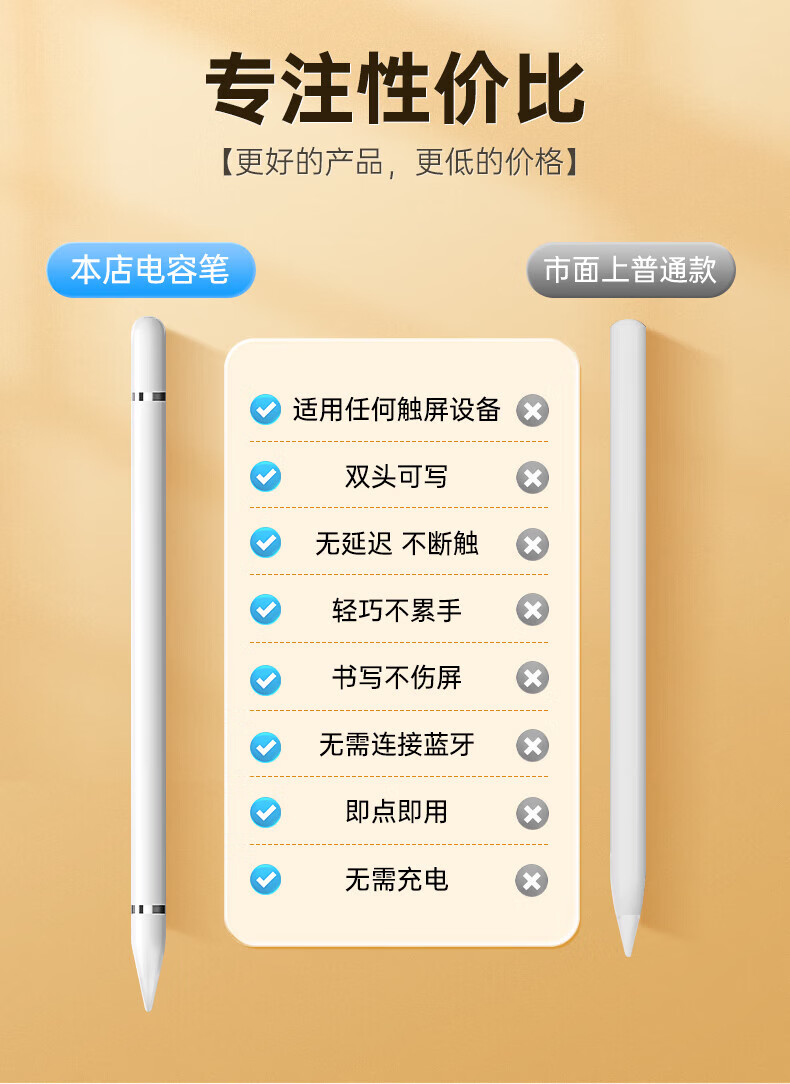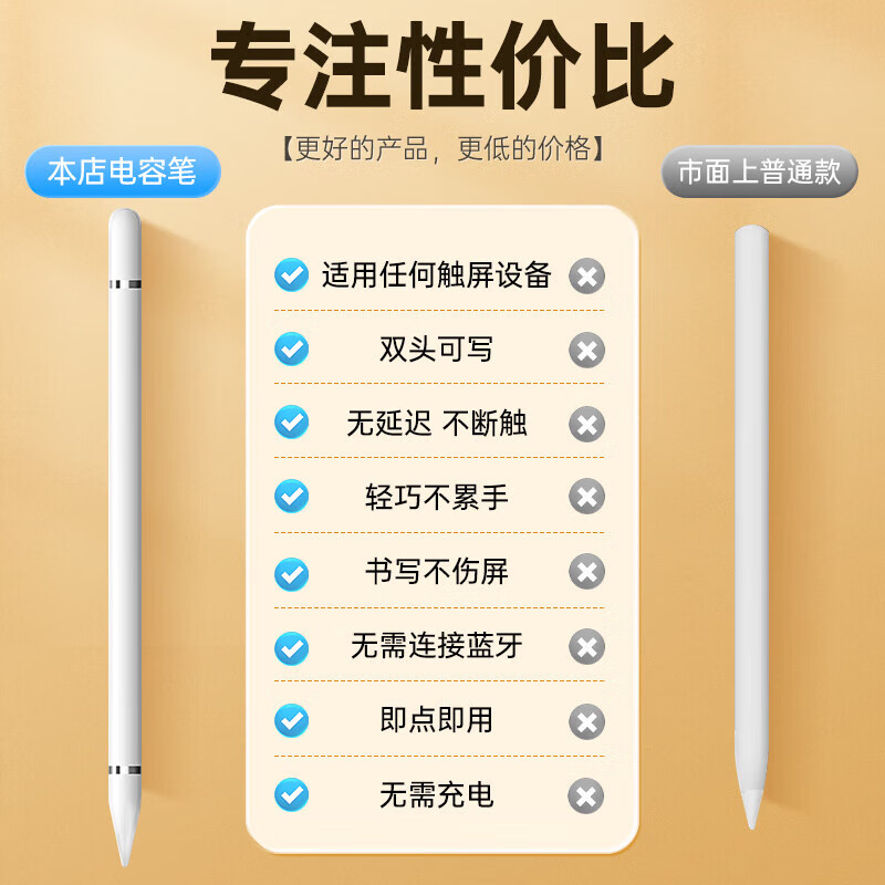 无需连接蓝牙 即点即用 无需充电;适用任何触屏设备 ;双头可写 无延迟 不断触