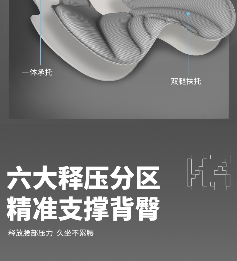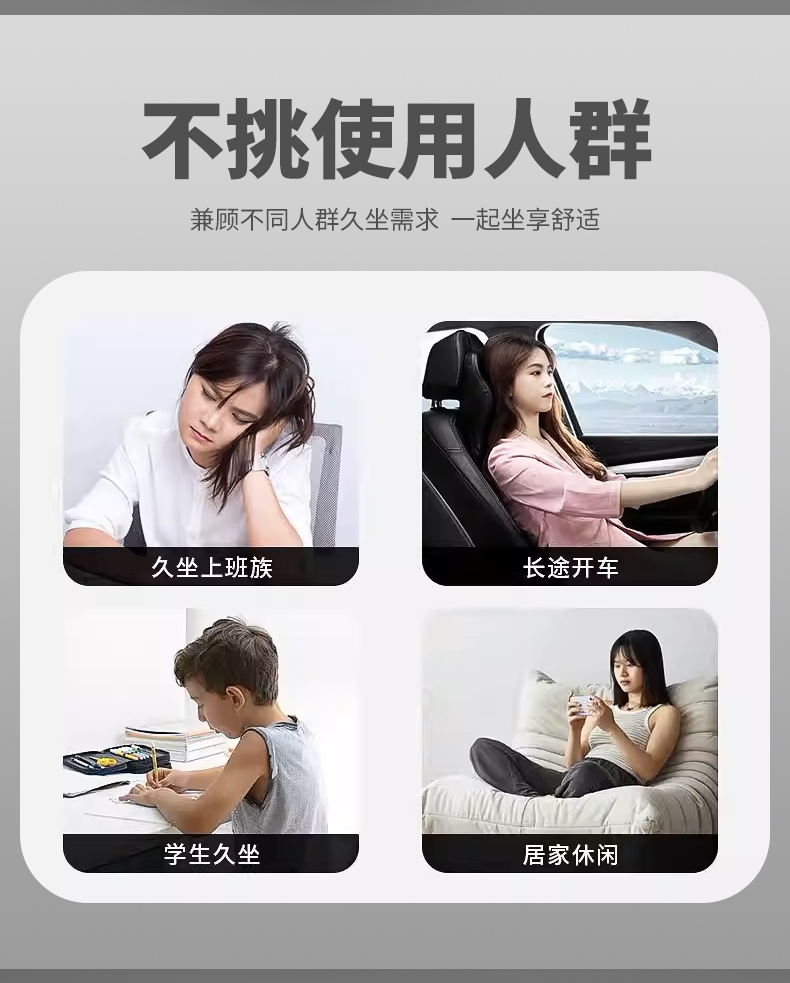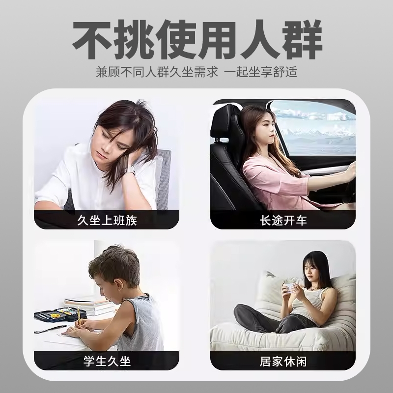 人体工学支撑:贴合腰椎曲线,分散脊椎压力,缓解久坐;折叠便携设计:轻松收纳,出差、通勤、办公场景随心;透气亲肤材质:久坐不闷汗,四季使用舒适不闷热
