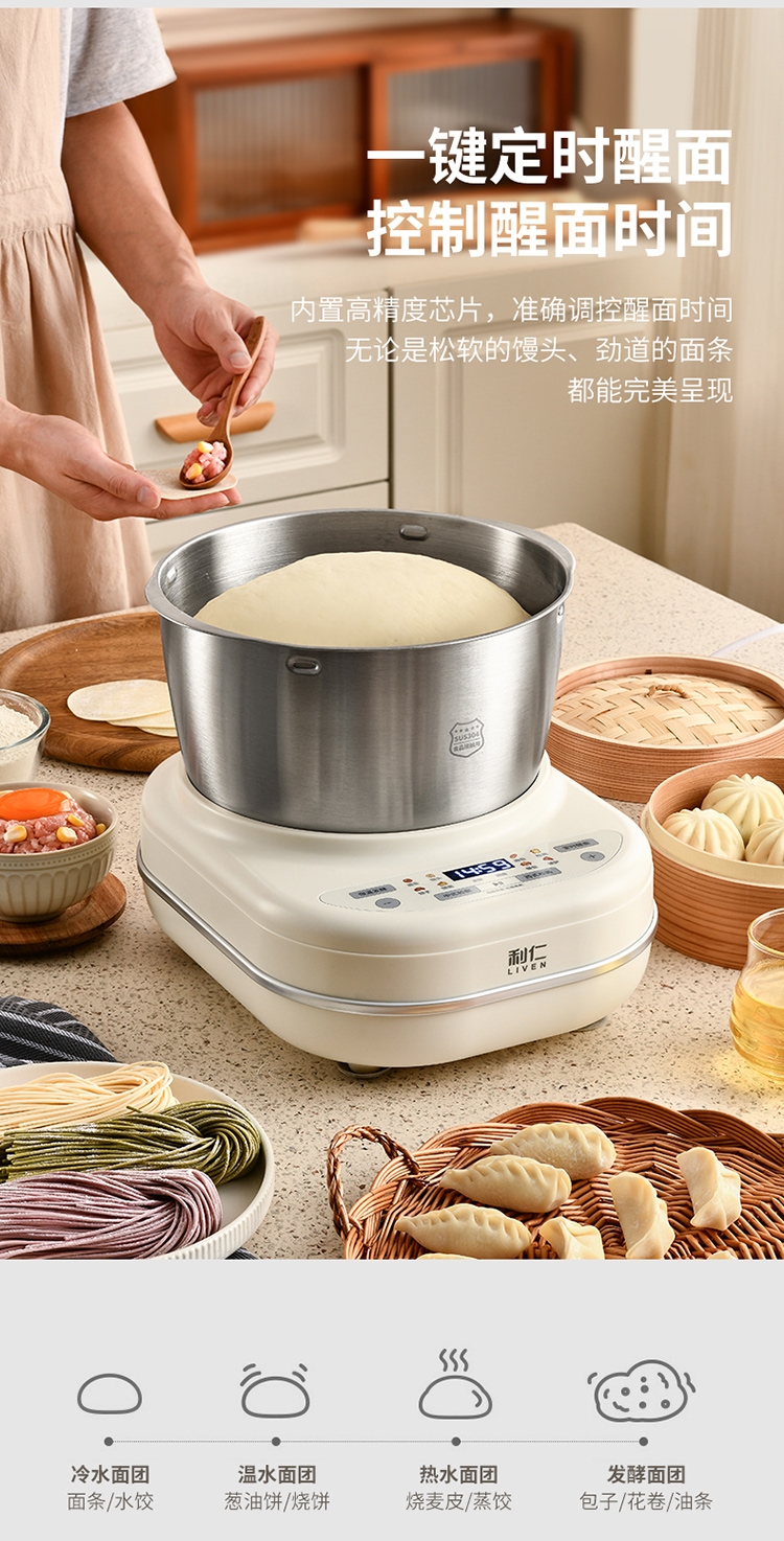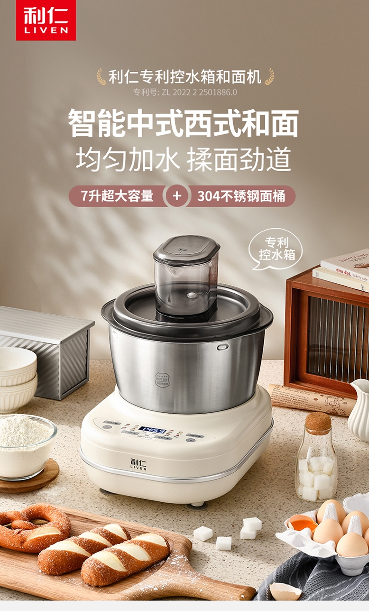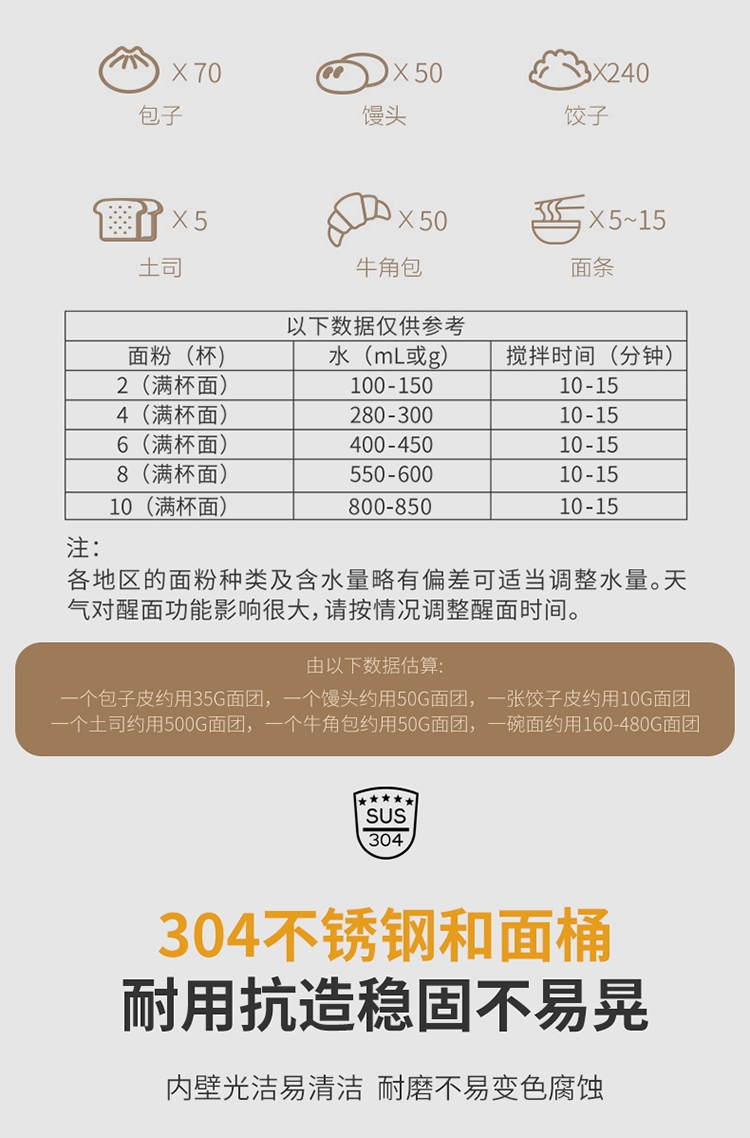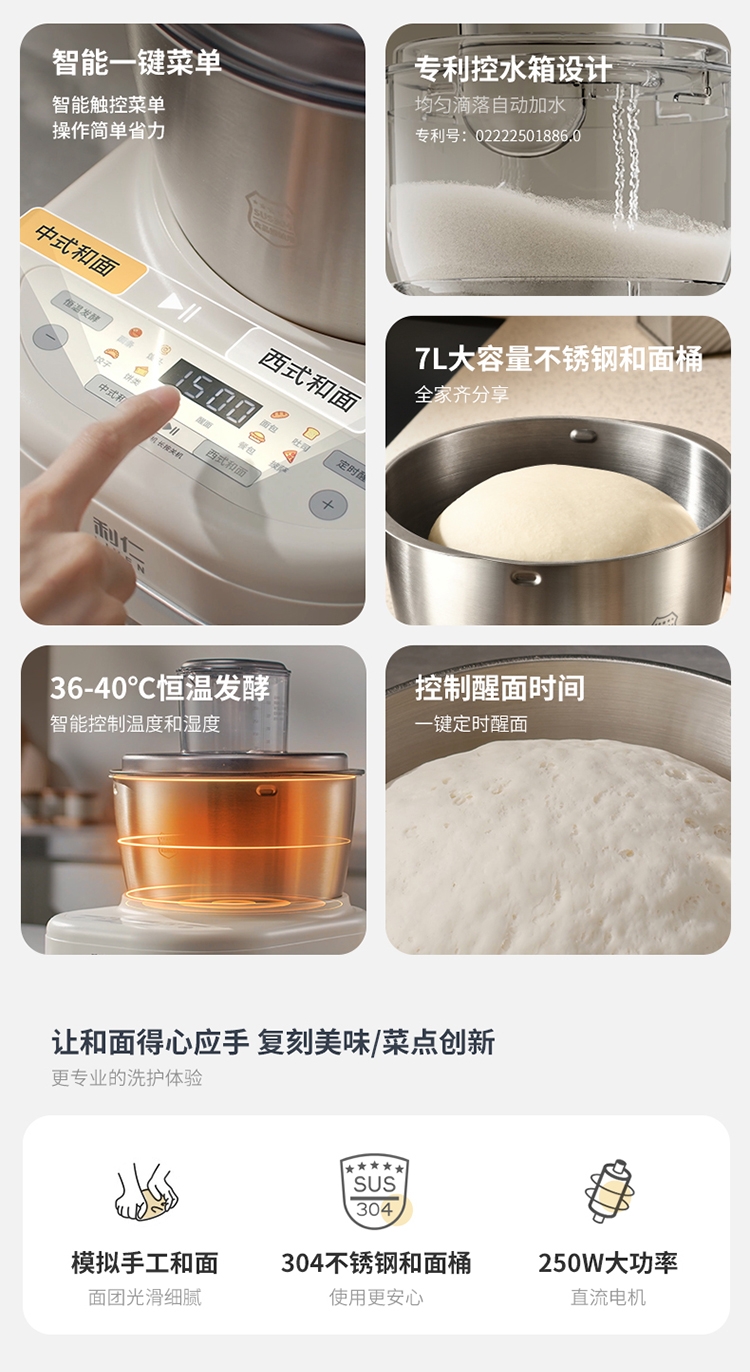 7升大容量;304不锈钢和面盆;智能和面 均匀加水