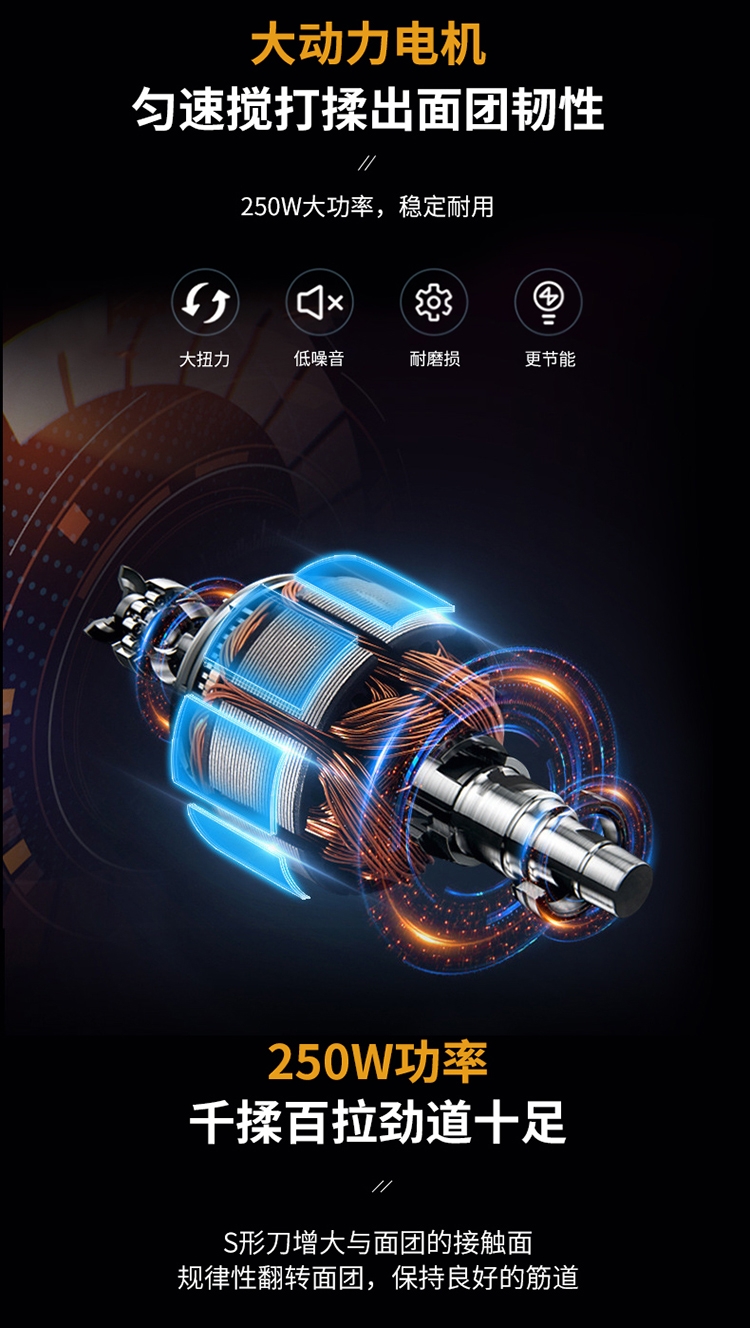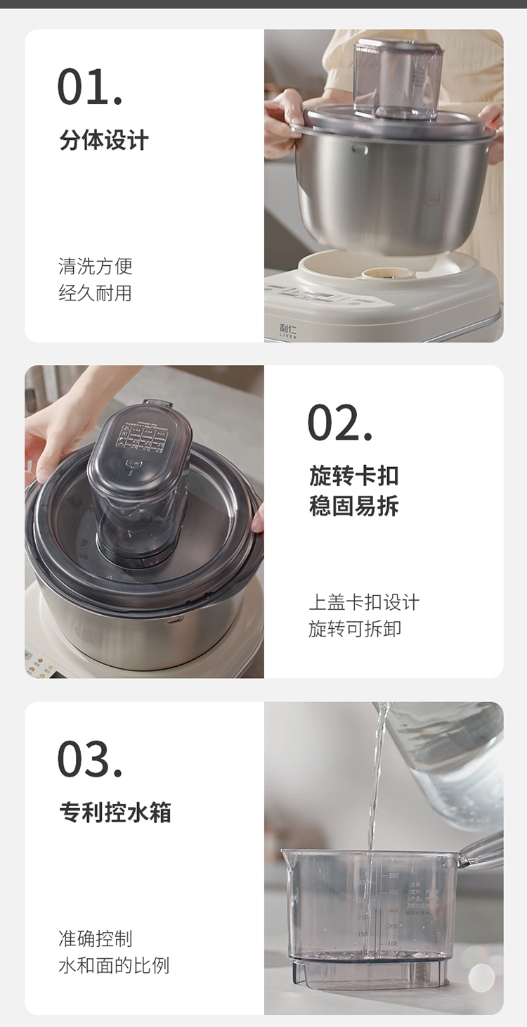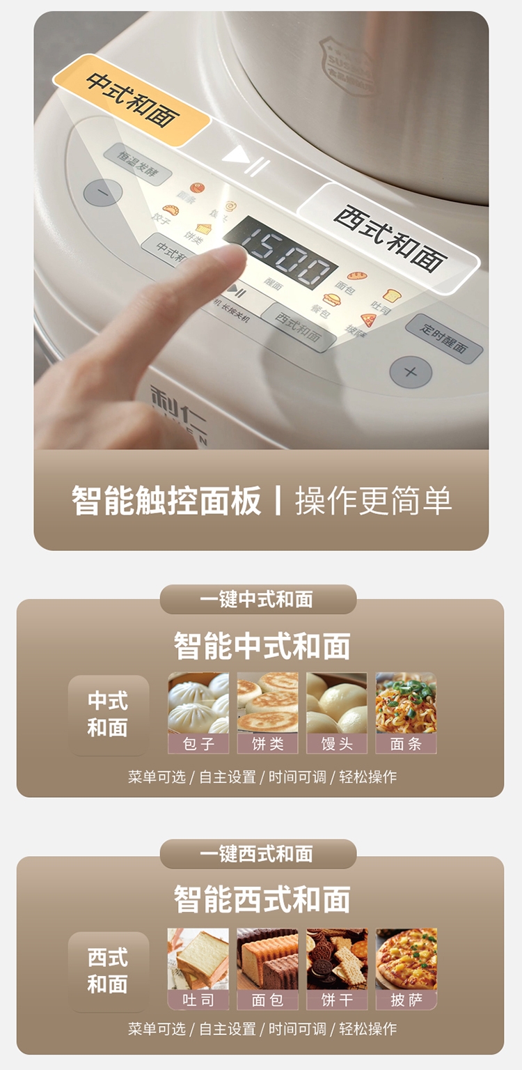 7升大容量;304不锈钢和面盆;智能和面 均匀加水