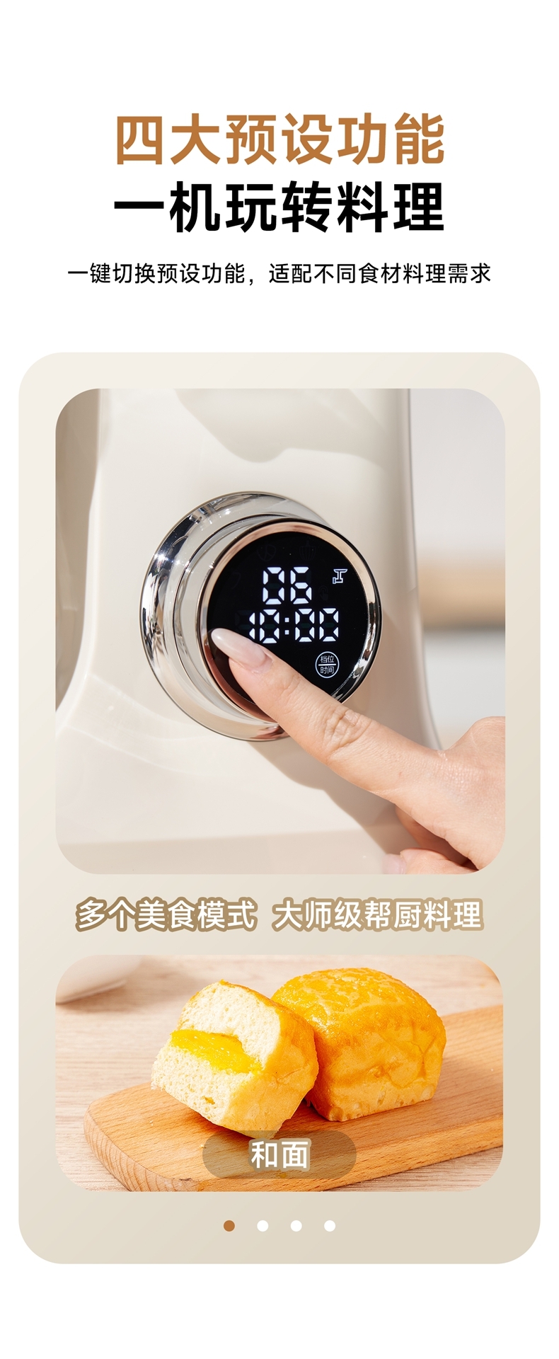 900w直流电机 7升家用大容量 11档精准调速;30分钟定时免看管 3大预设功能 ;触控屏+旋钮交叉控制 支持扩展接口,配件需另购