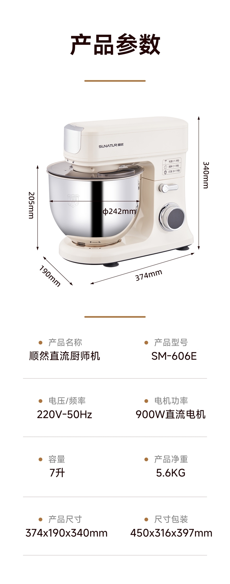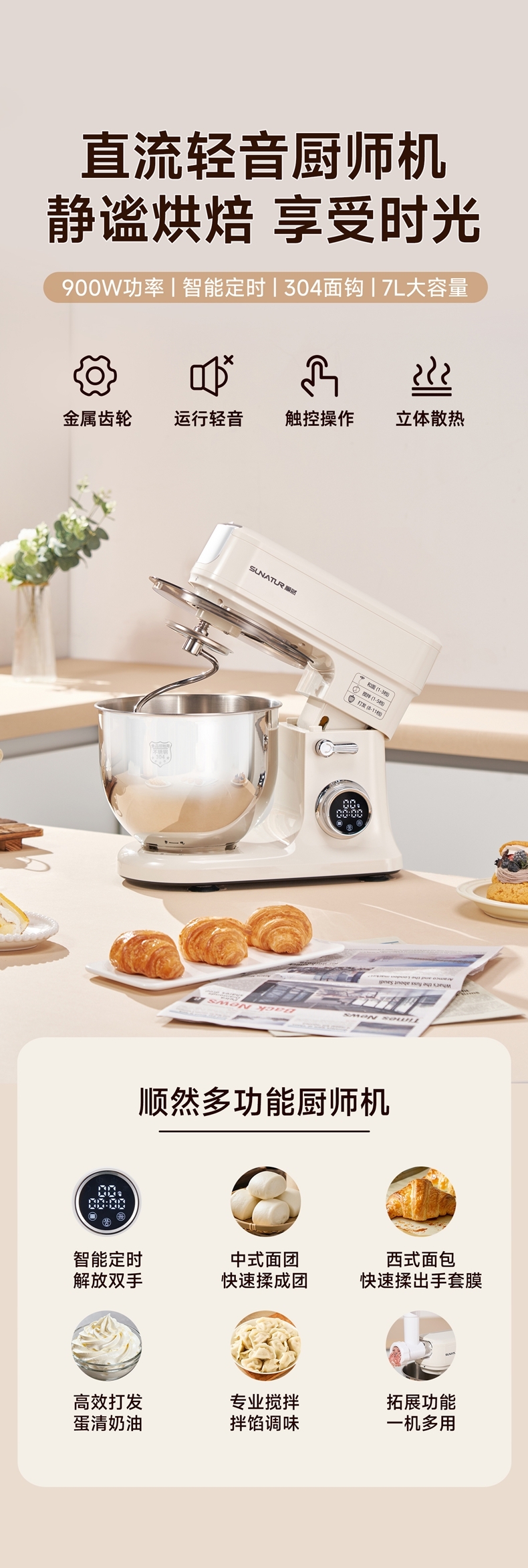 顺然 直流定时多功能厨师机7L标配款SM-606E