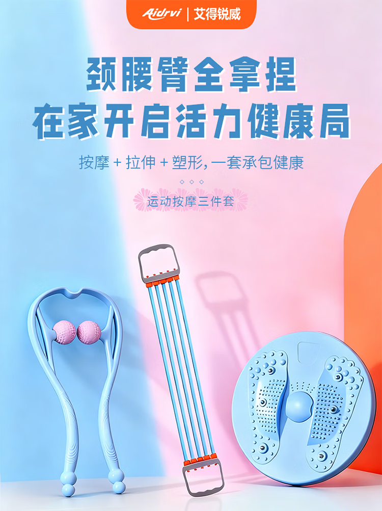 套装组合:颈椎按摩器+磁石扭腰机+五档拉力器