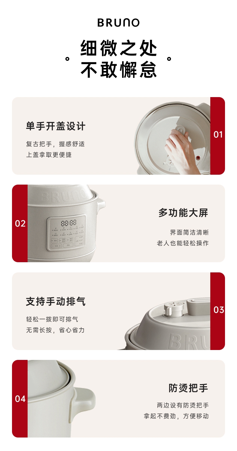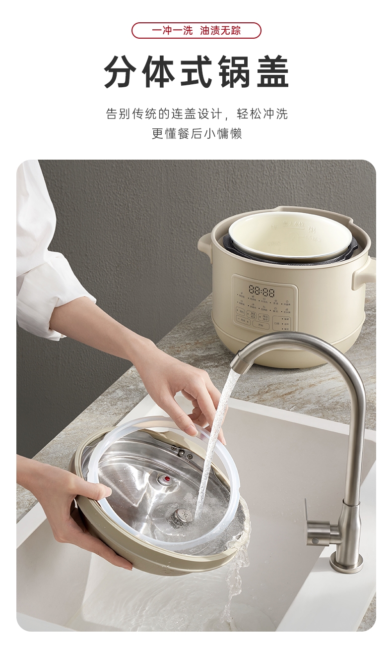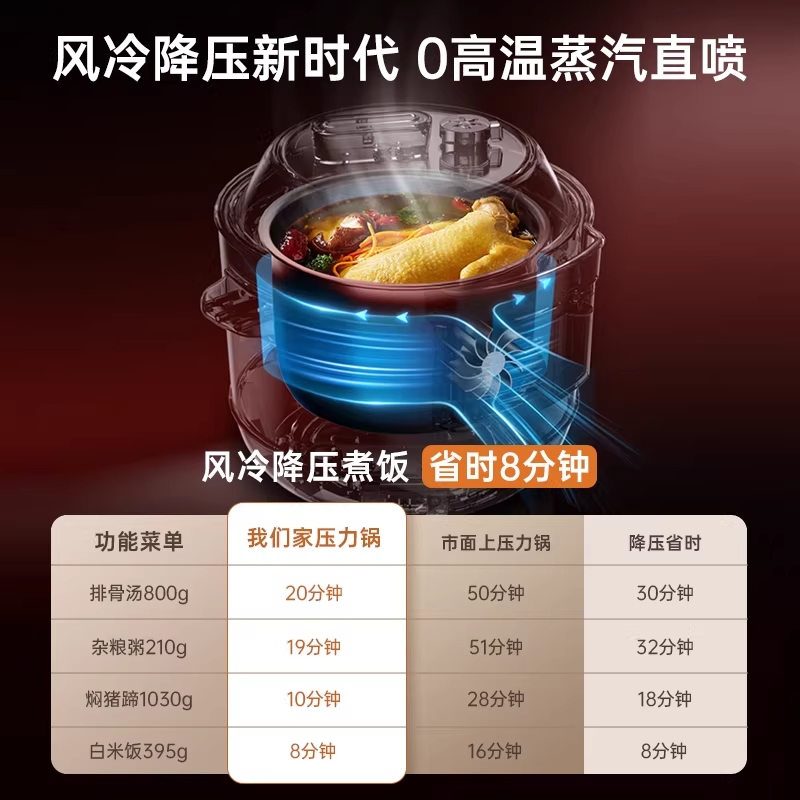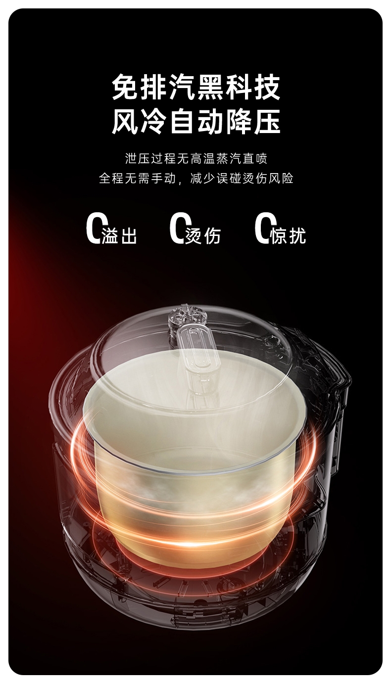 营养精煮×快速泄压-焖煮炖煲全面提速;风冷黑科技更快速、更安全、易清洗;专胆专用健康焖炖,煮饭不粘