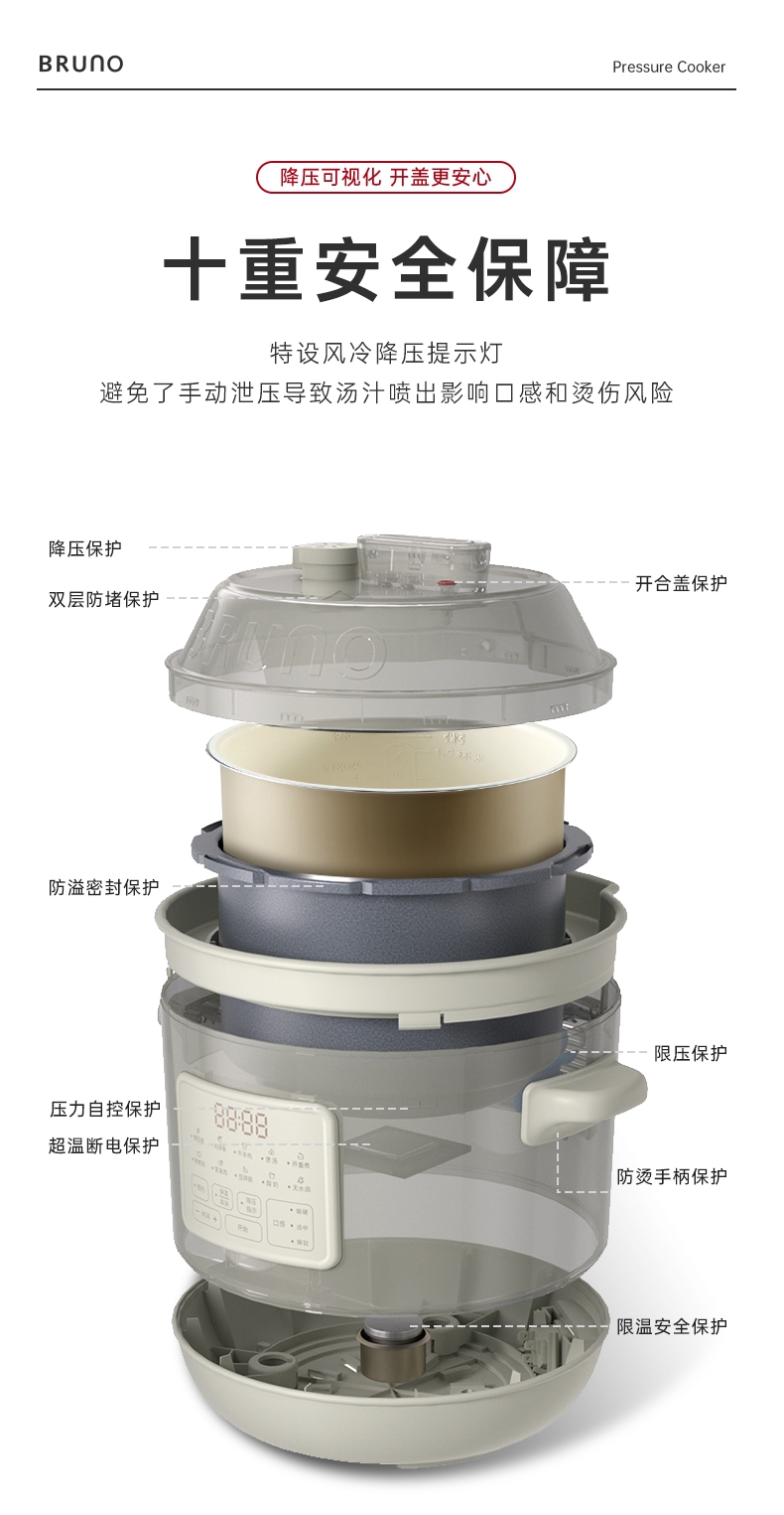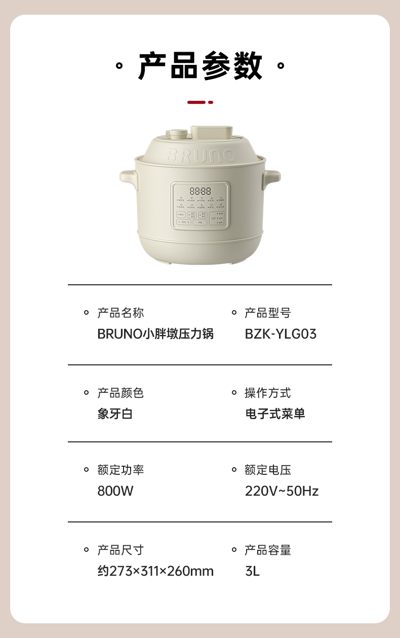 BRUNO 3L小胖墩压力锅标配BZK-YLG03