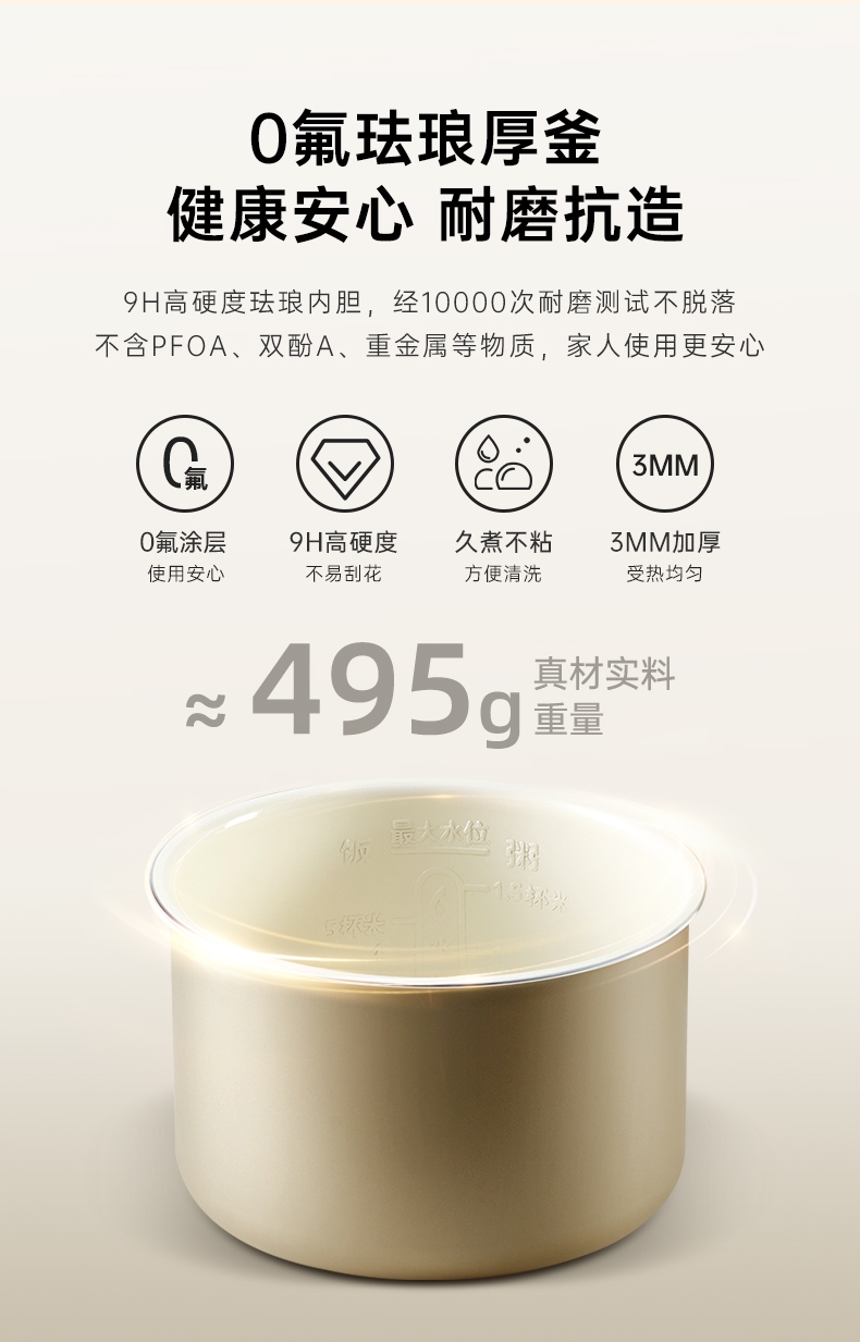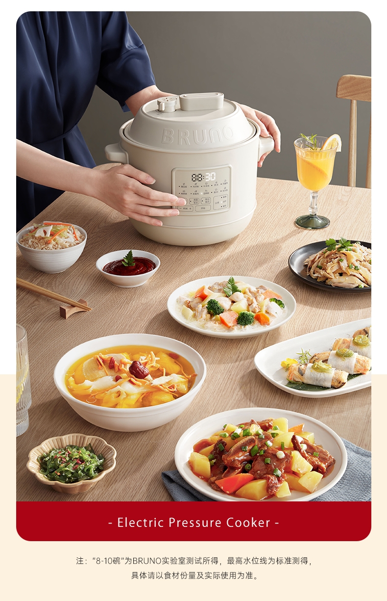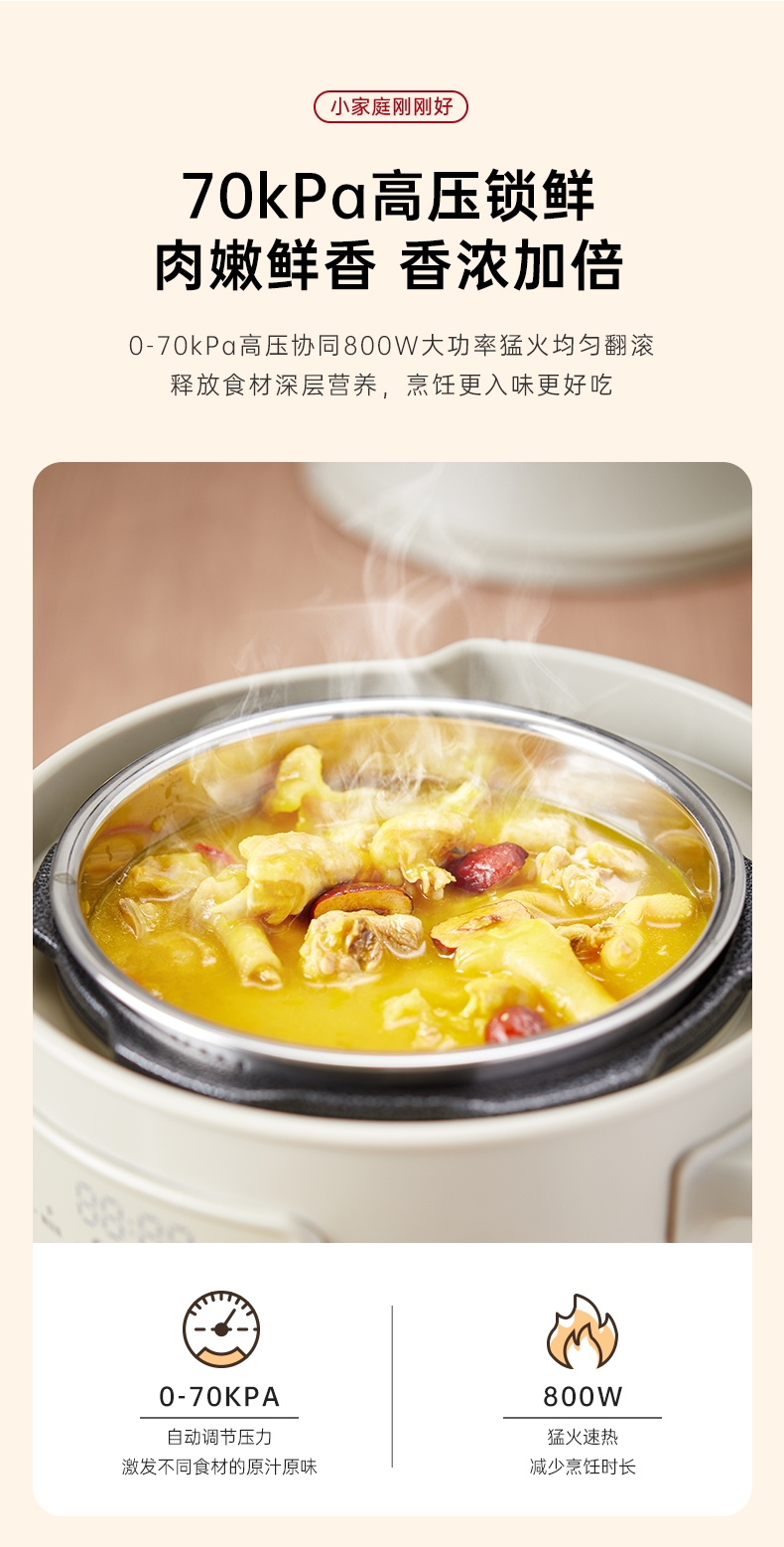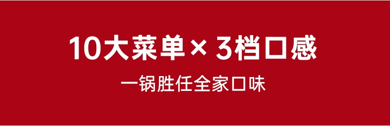 营养精煮×快速泄压-焖煮炖煲全面提速; 灵敏控压自动调节食材的专属压力;10大菜单×3档口感一锅胜任全家口味