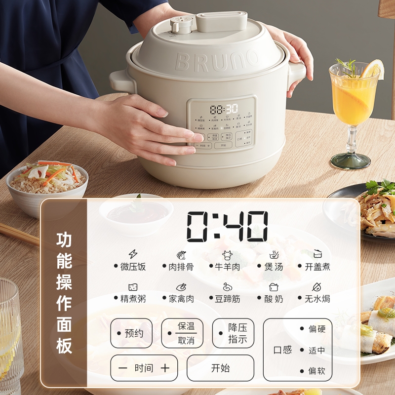 BRUNO 3L小胖墩压力锅双胆高配BZK-YLG03-XP01