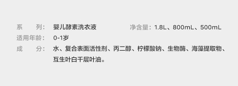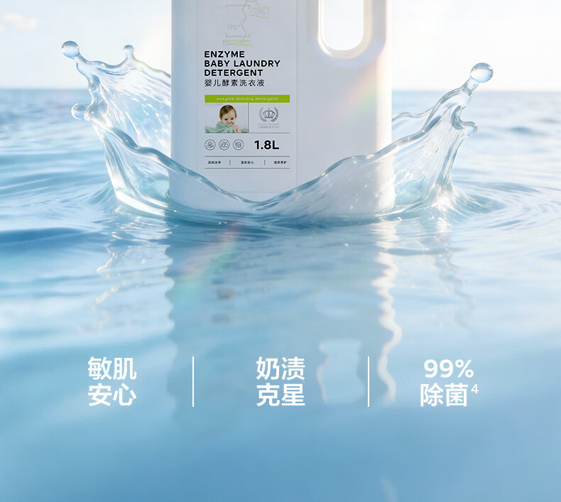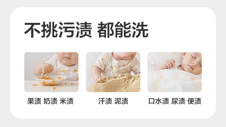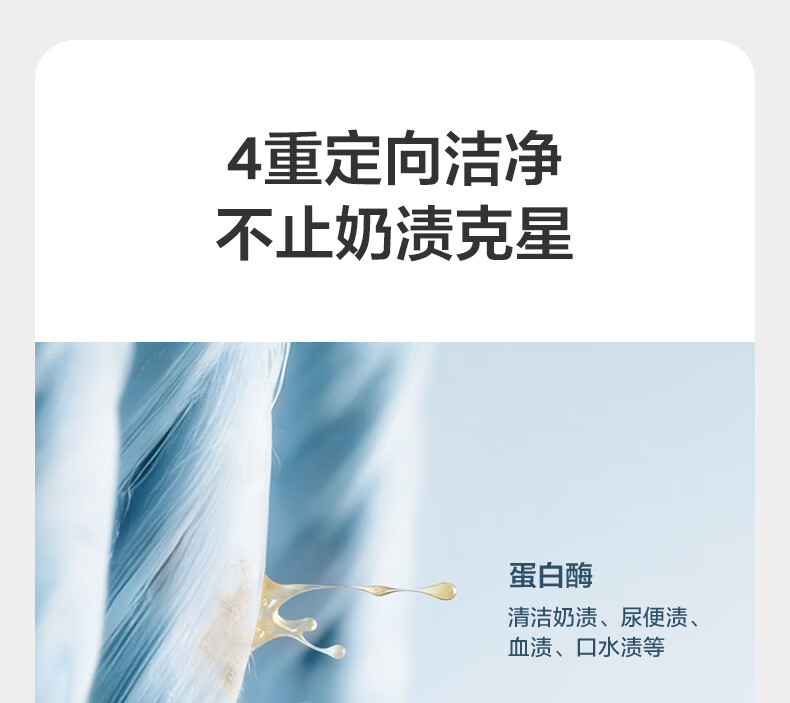 宝宝专研酵素,去渍除菌无残留;洁净安心丹麦酵素, 4倍去渍力 ;敏感肌安心,10大无添加,亲肤无刺激