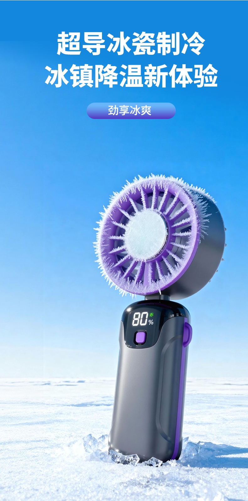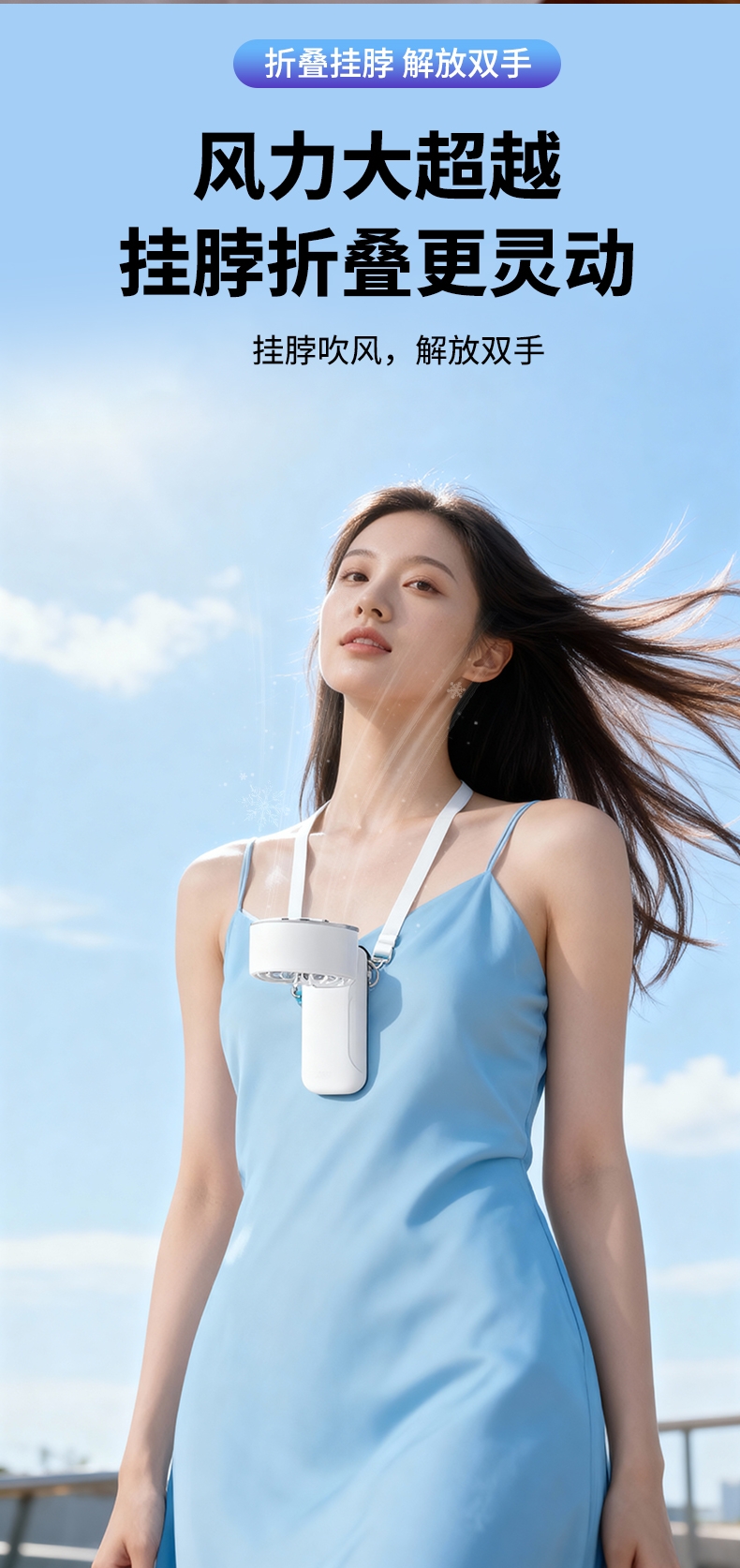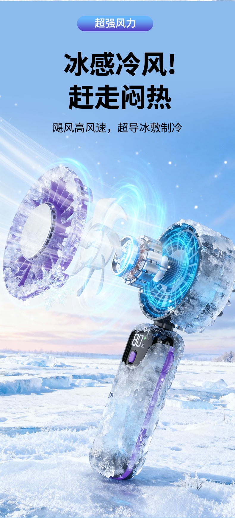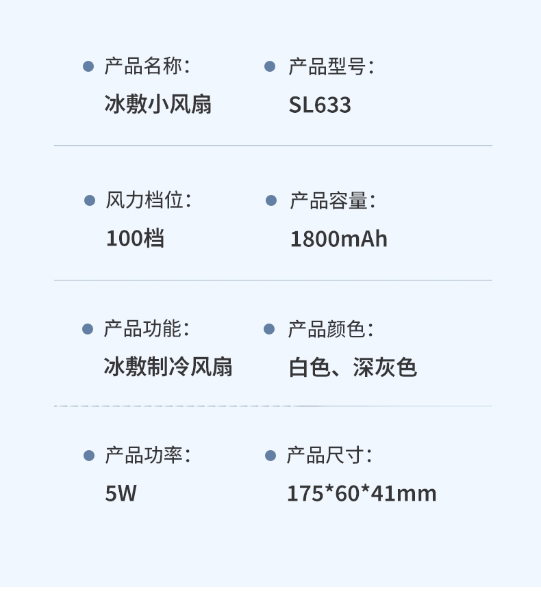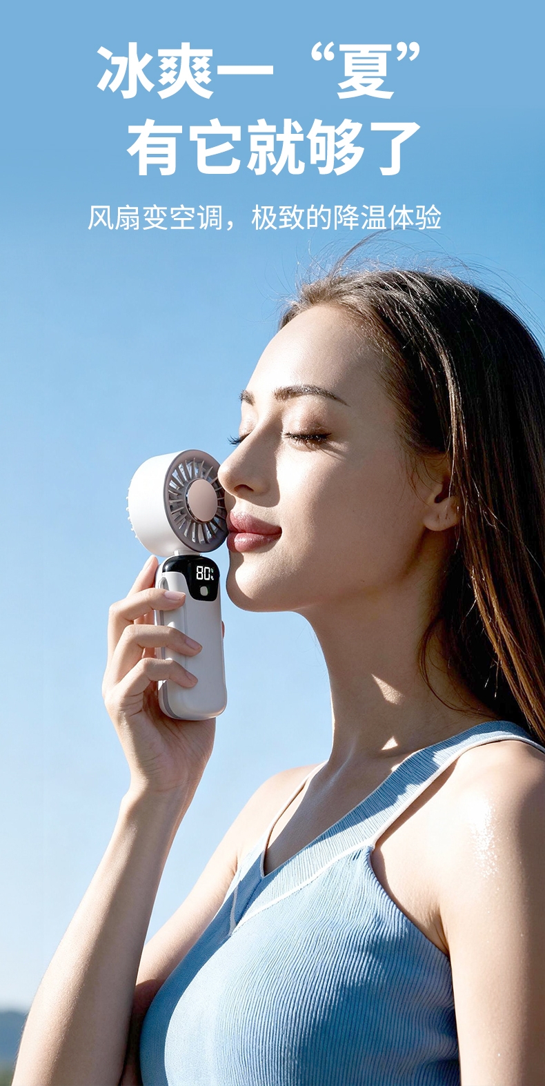 手持便携,支架稳固,一机多用;小巧便携,体积轻便,随手可带,不占空间;强力降温,快速送风,带来清凉体感
