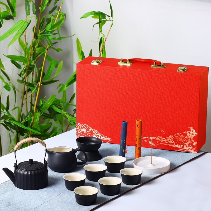 红色礼盒黑色茶具
