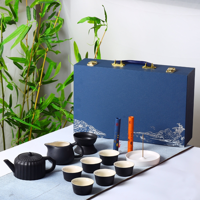 蓝色礼盒黑色茶具