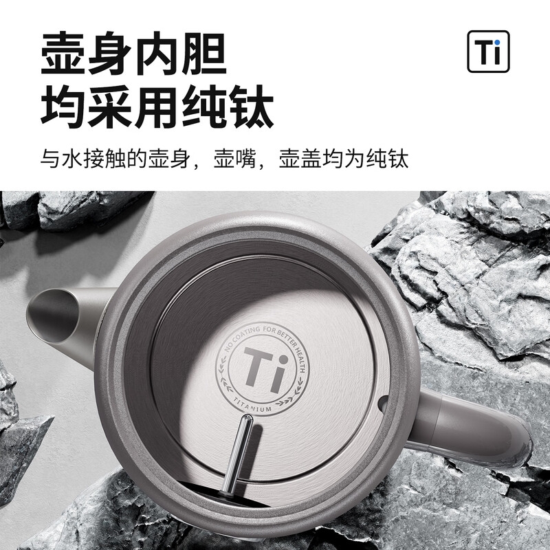 纯钛壶身,辨识度造型,送礼新风尚;纯钛触水 安心鲜煮抑菌≥90%;升级纯钛烧水壶 强抗菌 水质鲜活
