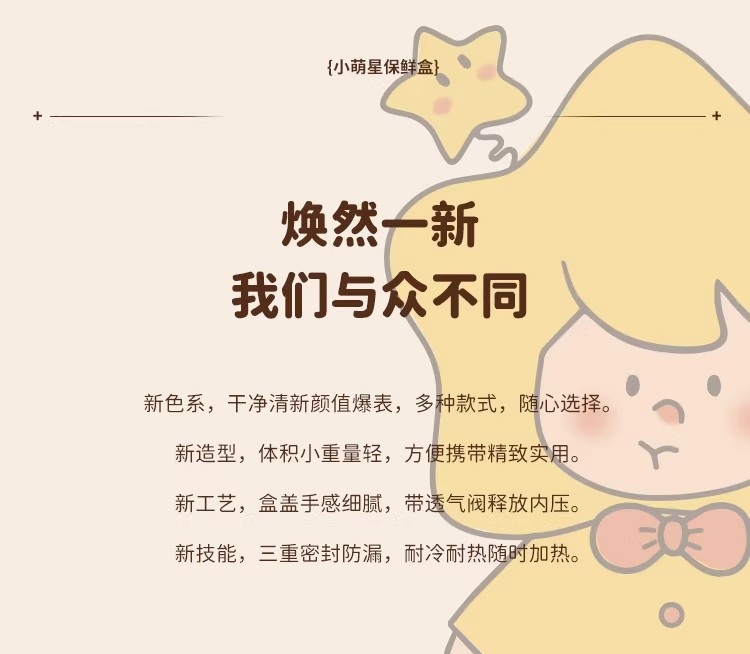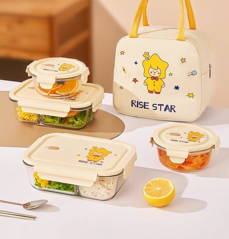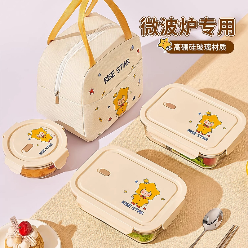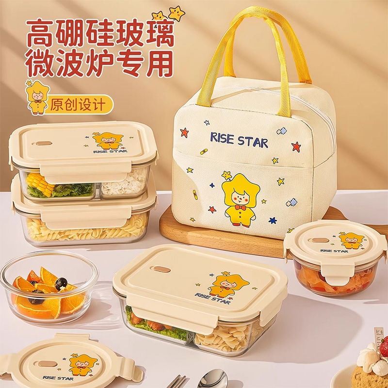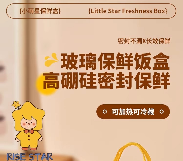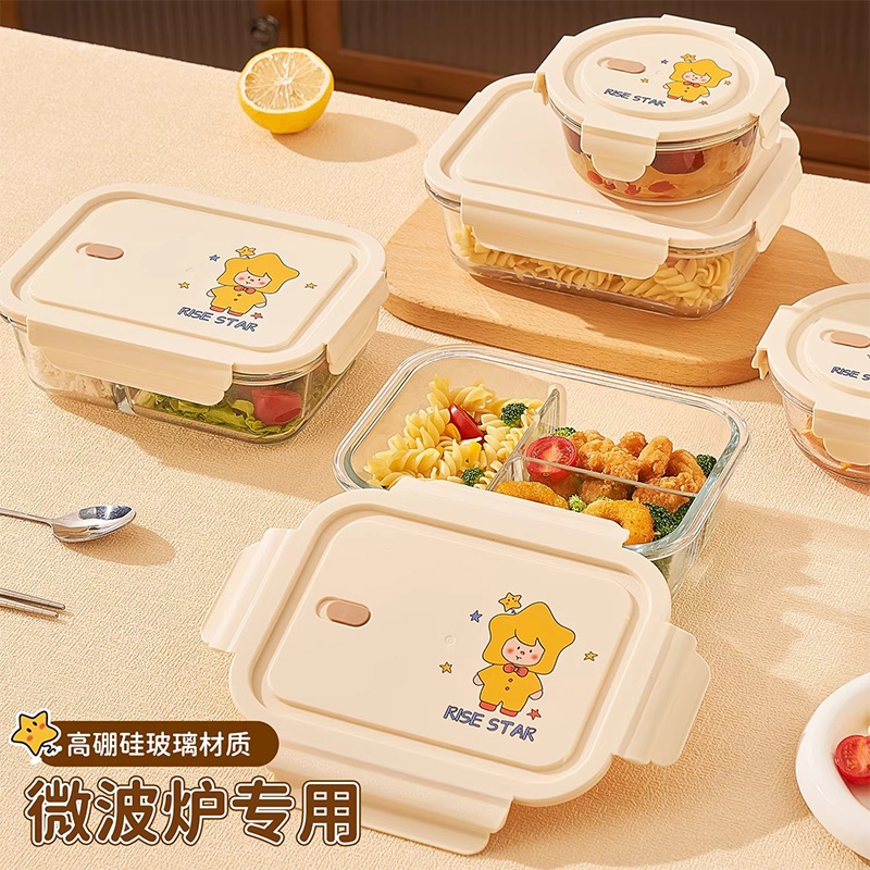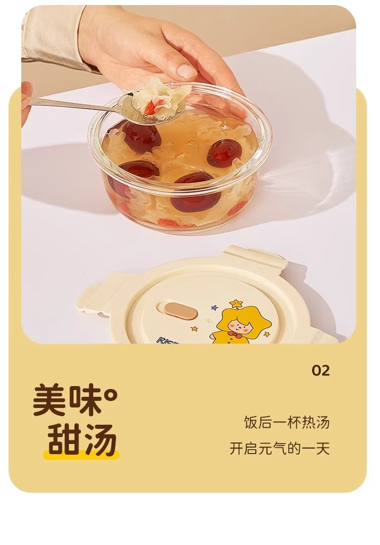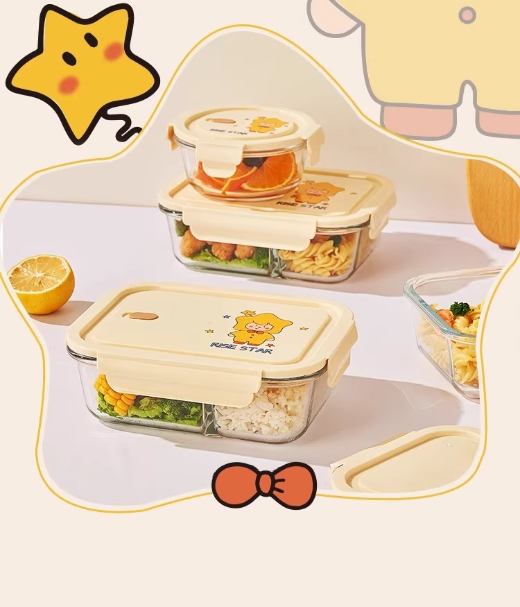 高硼硅耐热玻璃,可微波加热可冰箱冷藏;加厚密封胶圈,卡扣盖子,密封不漏;独家萌趣卡通设计,超高颜值