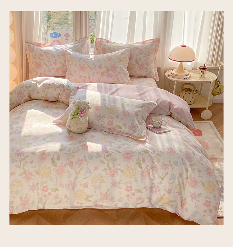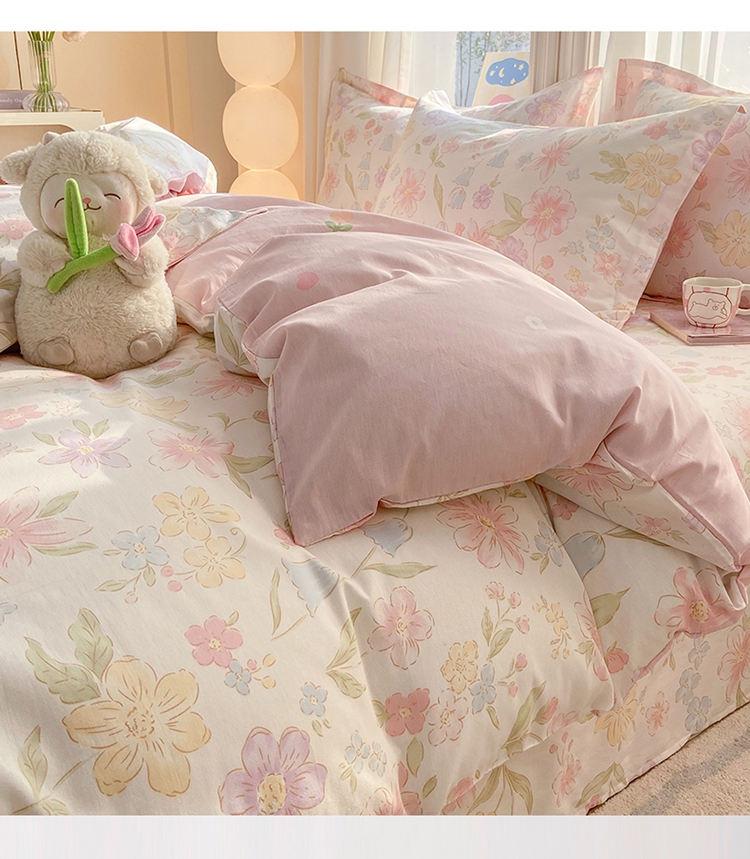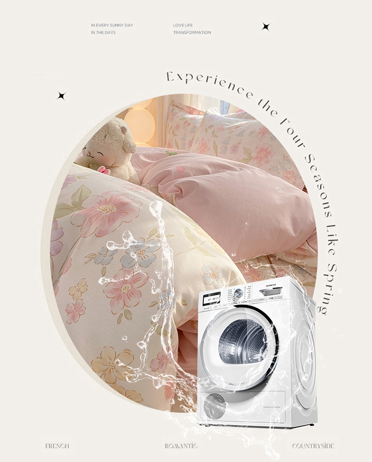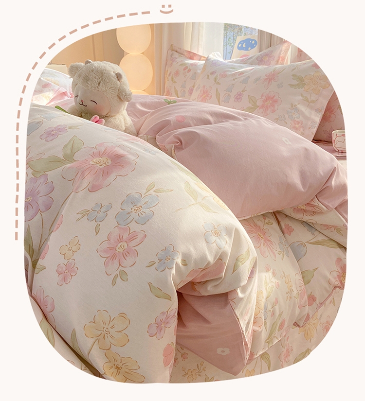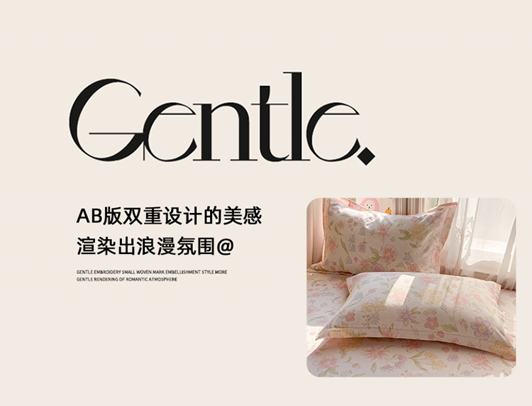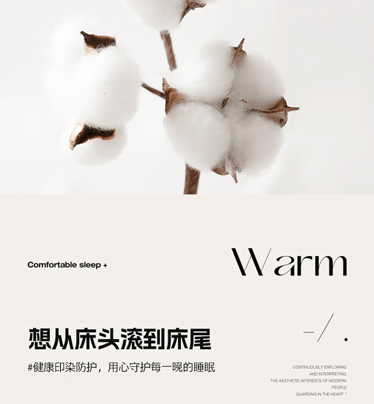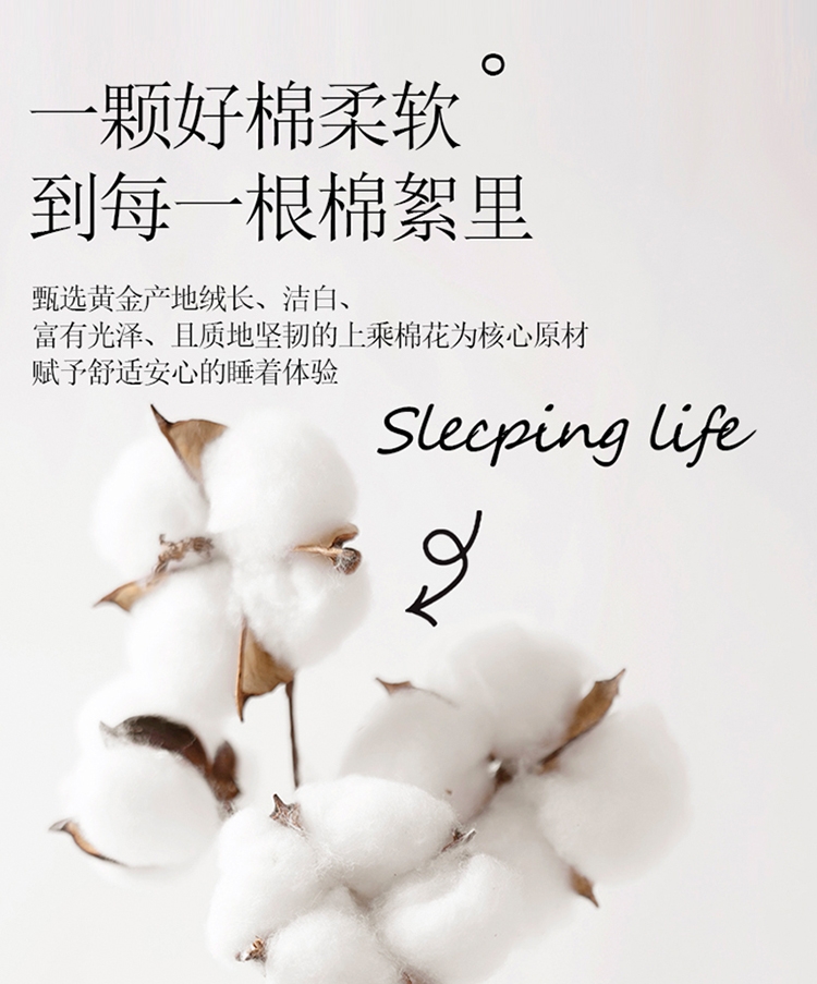 全棉面料手感细腻柔软吸湿透气不感闷热享受好睡眠;甄选黄金产地绒长、洁白、赋予舒适安心的睡着体验:;AB版双重设计的美感渲染出浪漫氛围
