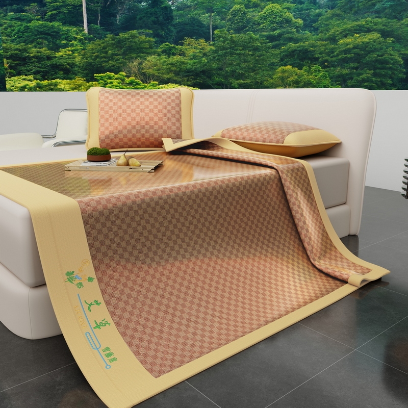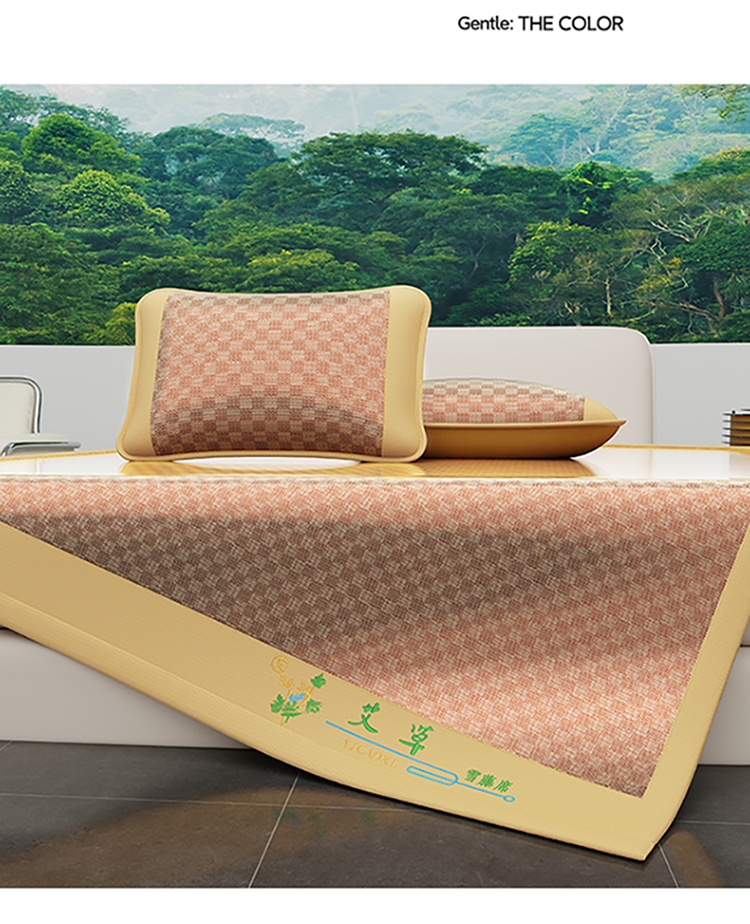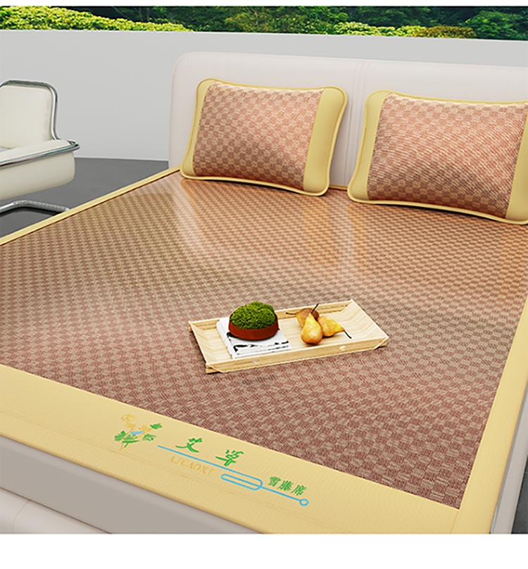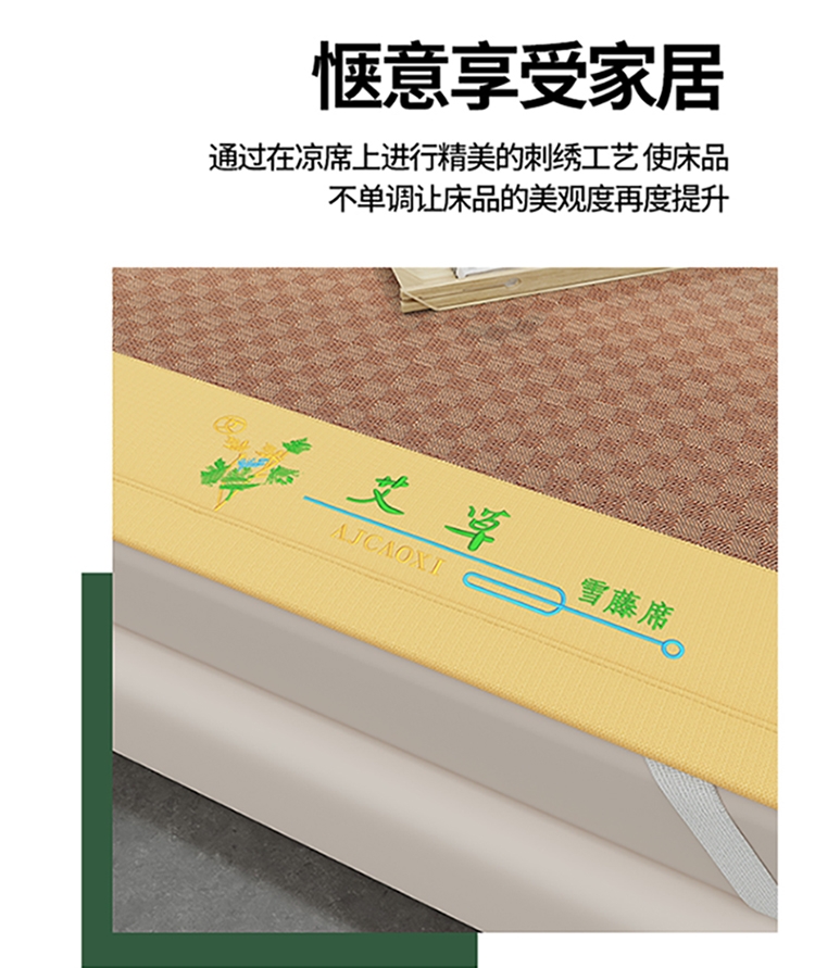 品名:冰藤艾草刺绣凉席三件套