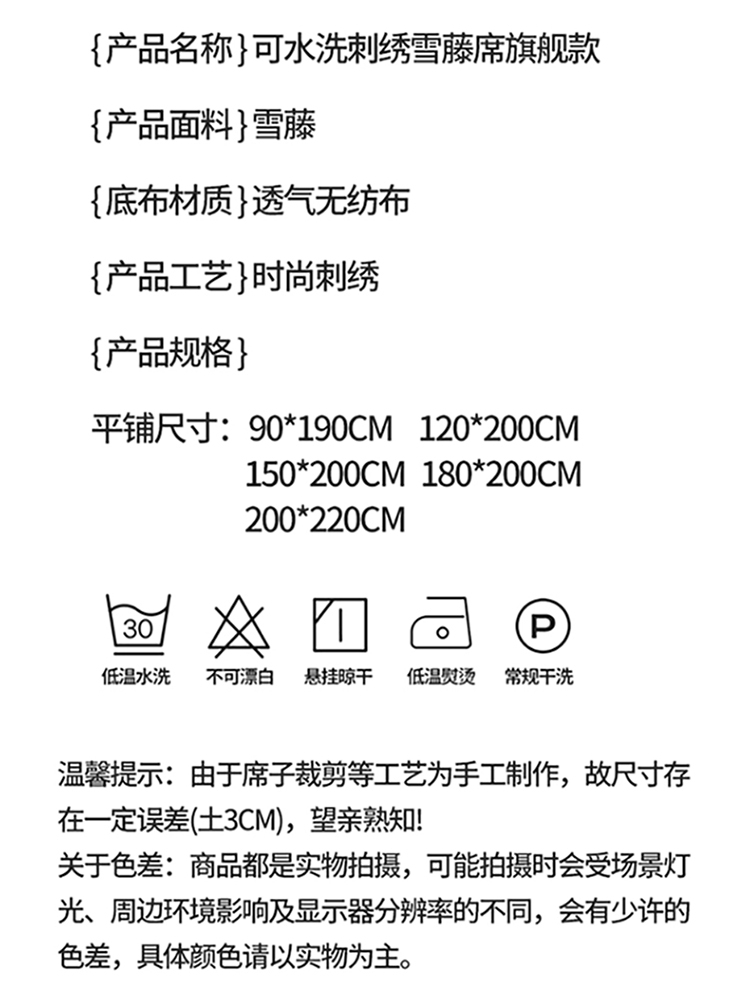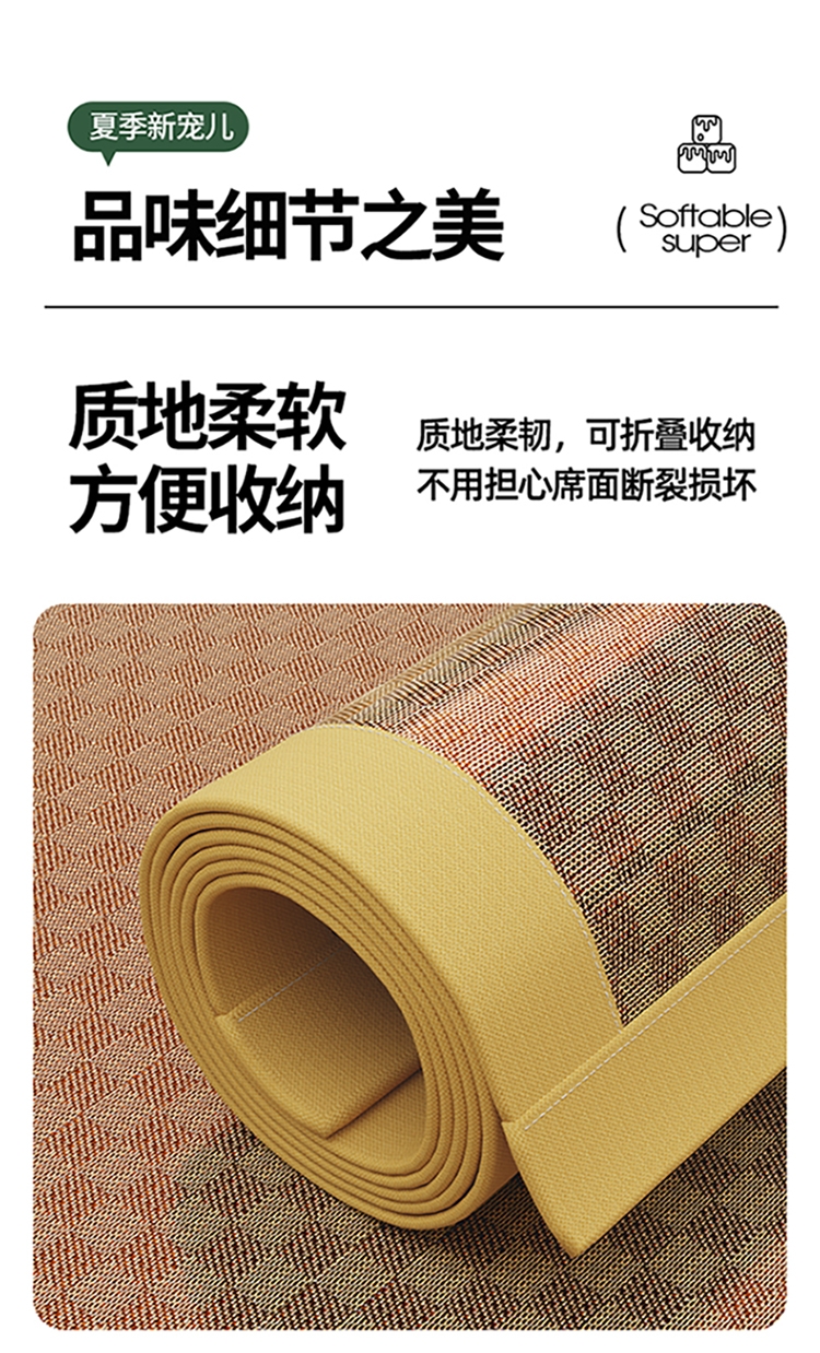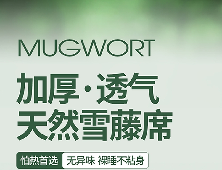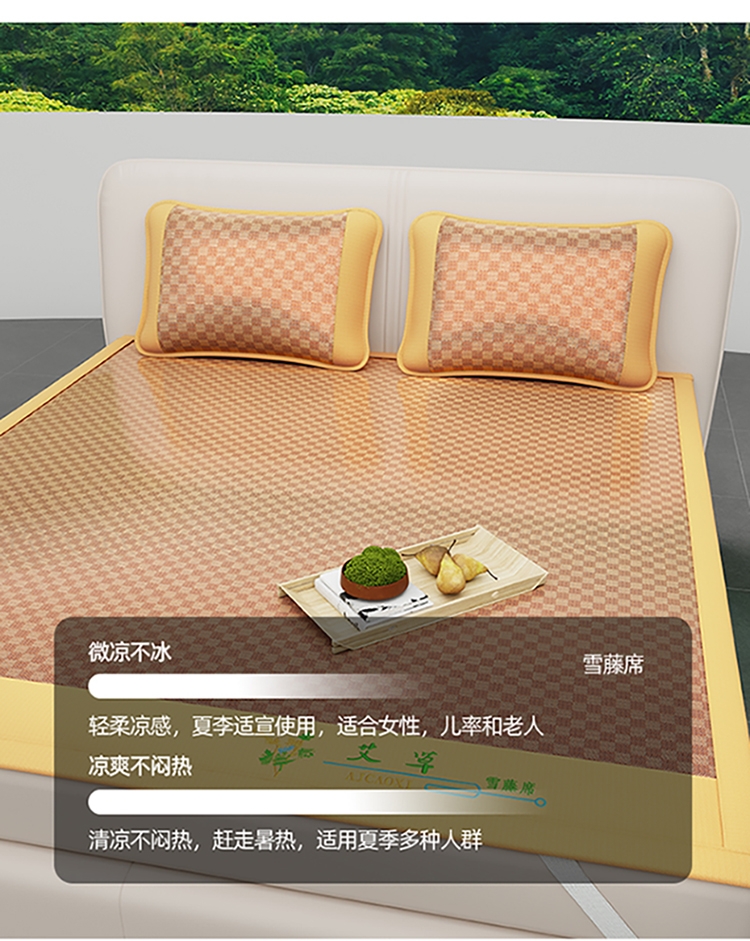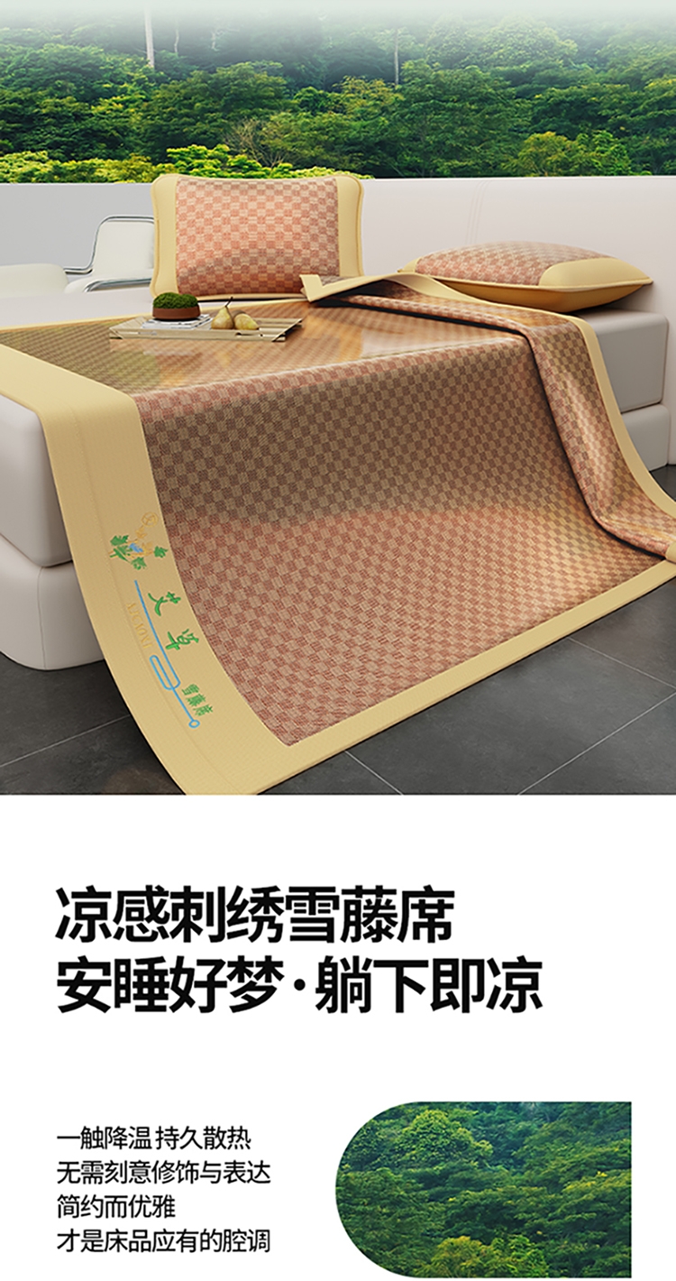 加厚·透气天然雪藤席 怕热首选 无异味 裸睡不粘身;凉感刺绣雪藤席安睡好梦·躺下即凉;甄选天然雪藤席面,自然凉感植物选材坚韧细滑纺织紧密