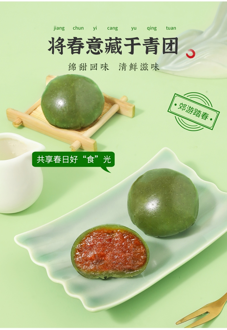 配置清单:山楂青团60g*2 黑芝麻青团60g*2 蛋黄肉松青团60g*2 粒粒红豆沙青团60g*2