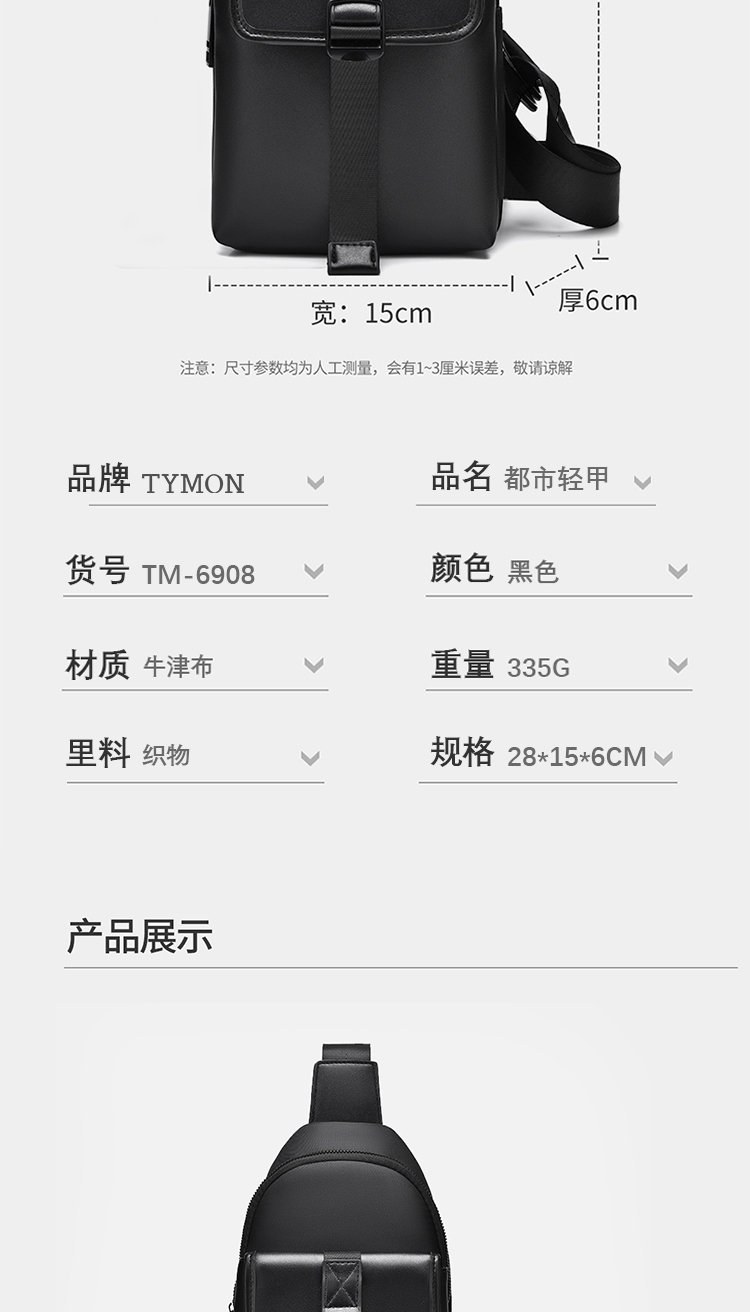 泰梦 都市轻甲休闲胸包斜挎包单肩包TM-6908