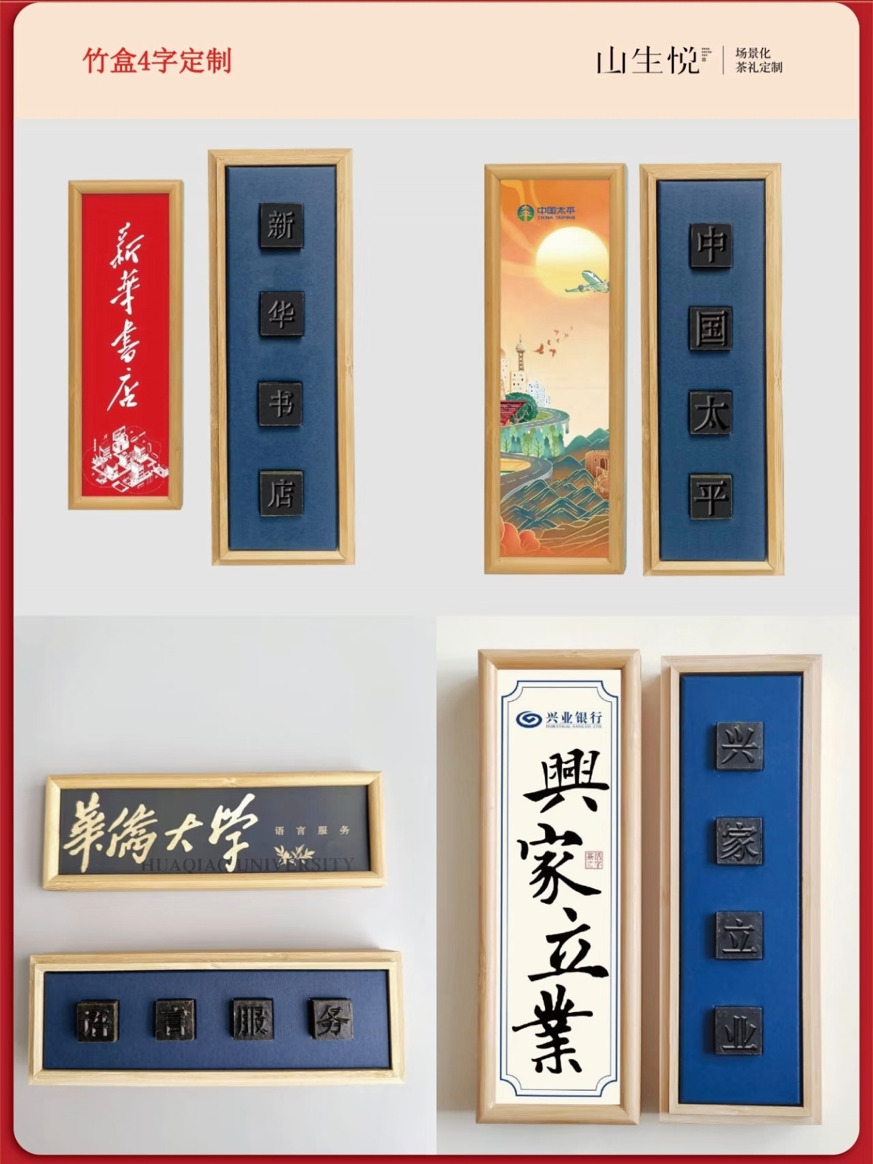 活字与茶叶的创意组合,一字一茶以字表意;高山料有趣茶,茶汤橙黄入口醇厚回甘;专属定制,让员工/客户感受到独一无二的心意