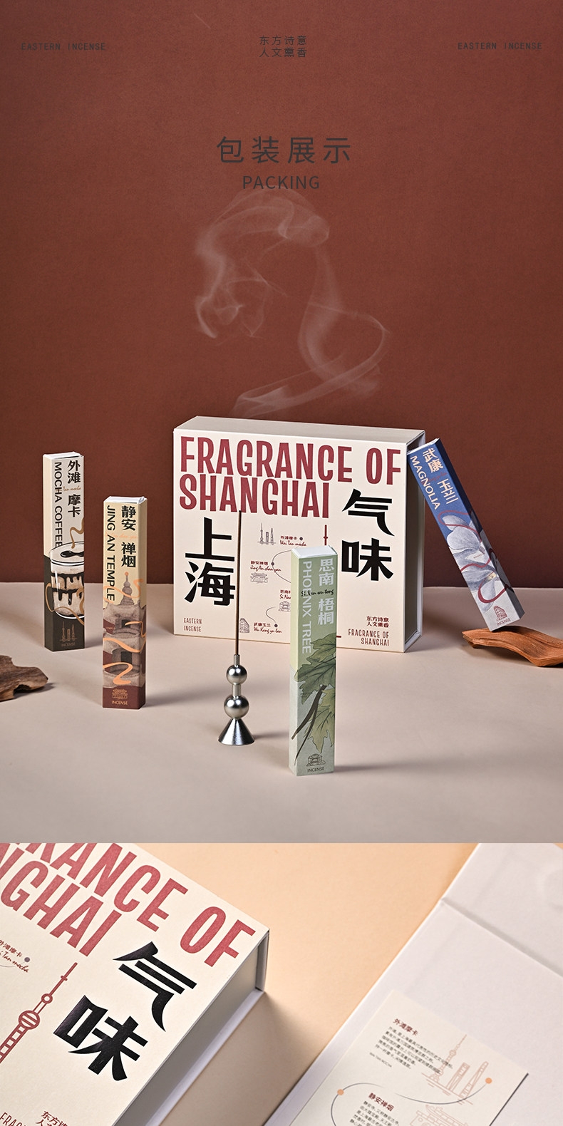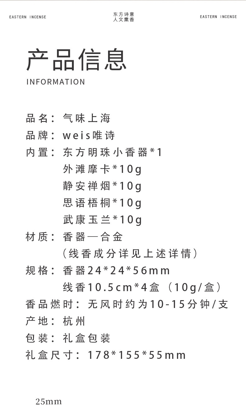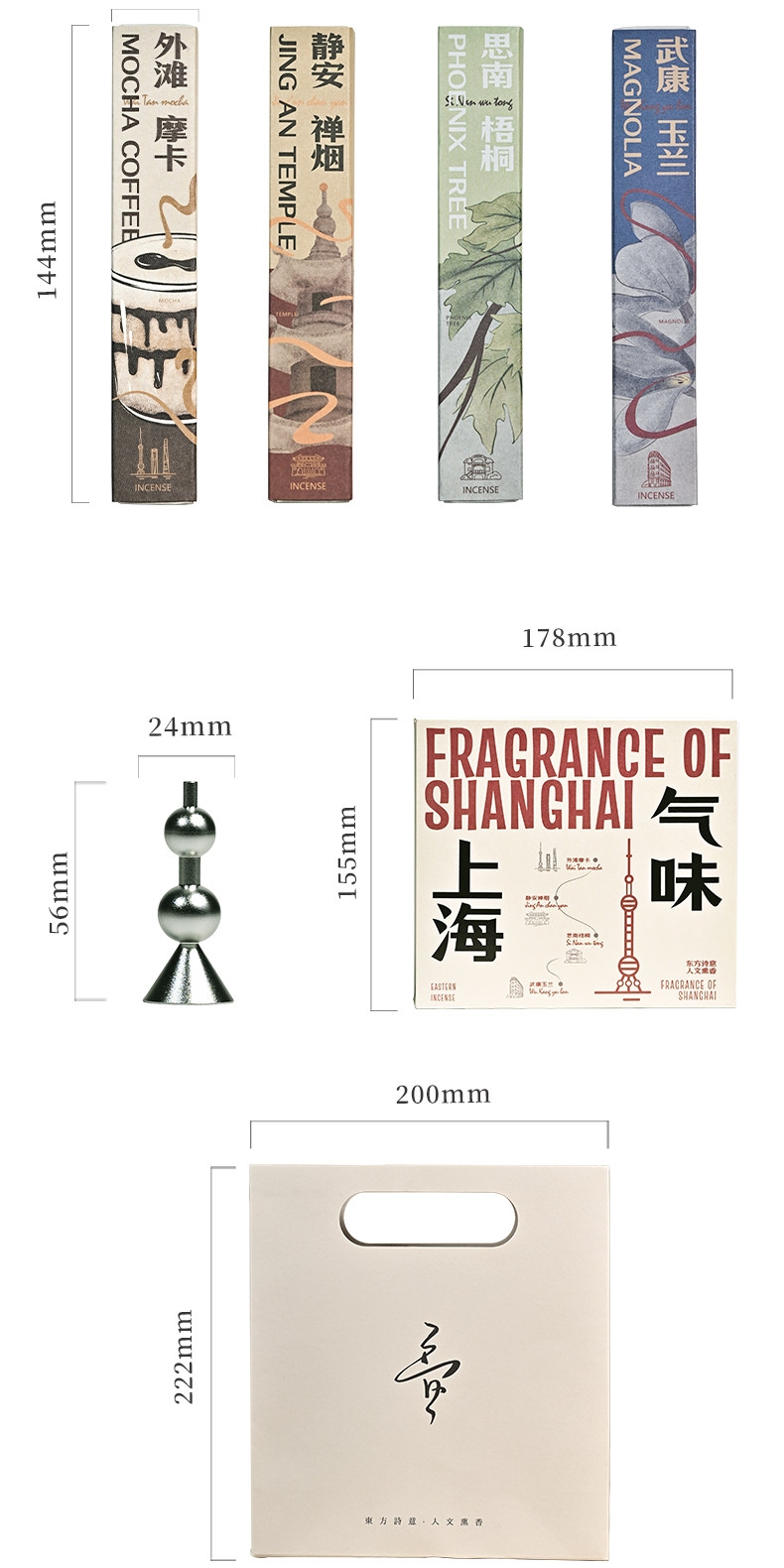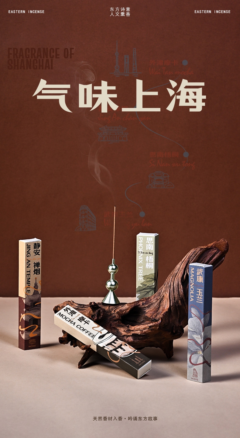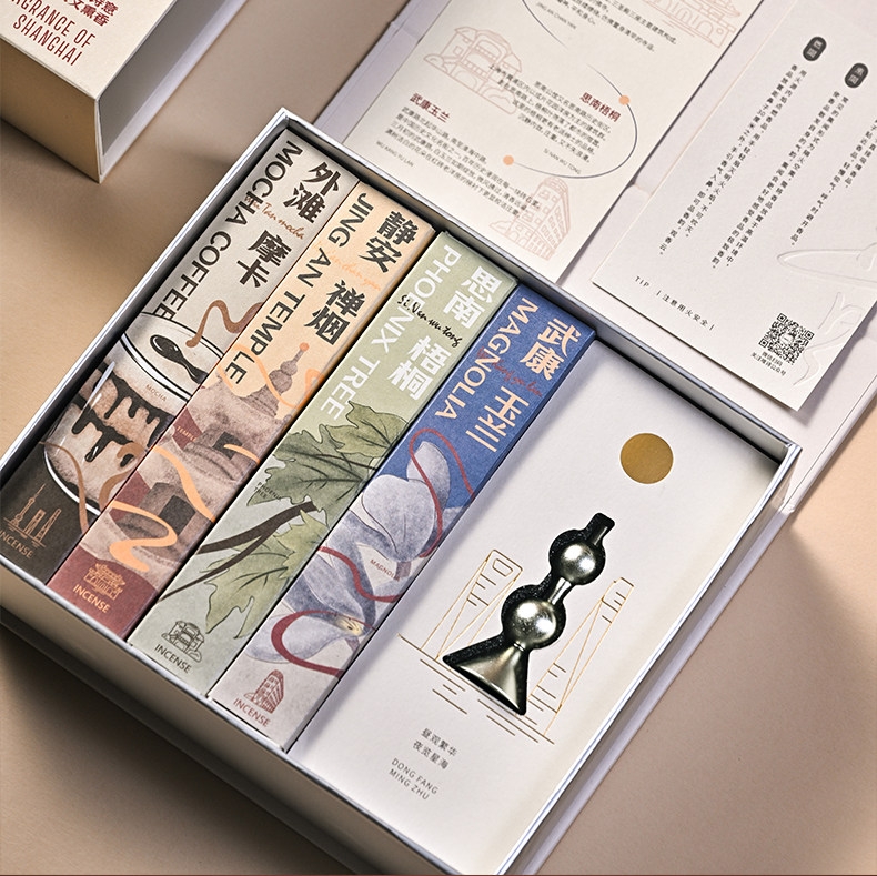 配置:香器*1 外滩摩卡线香*10g 静安禅烟线香*10g 思南梧桐线香*10g 武康玉兰线香*10g