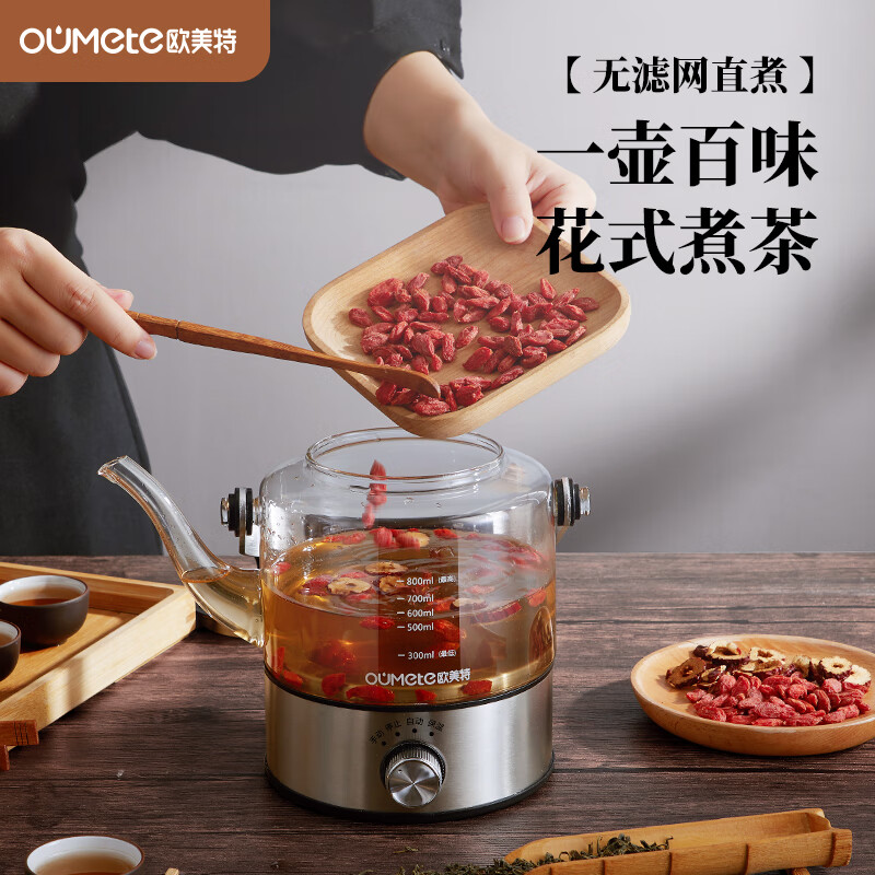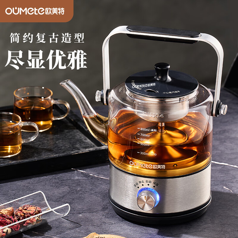 欧美特 蒸汽煮茶器提梁式茶壶玻璃电茶炉OMT-PC0805