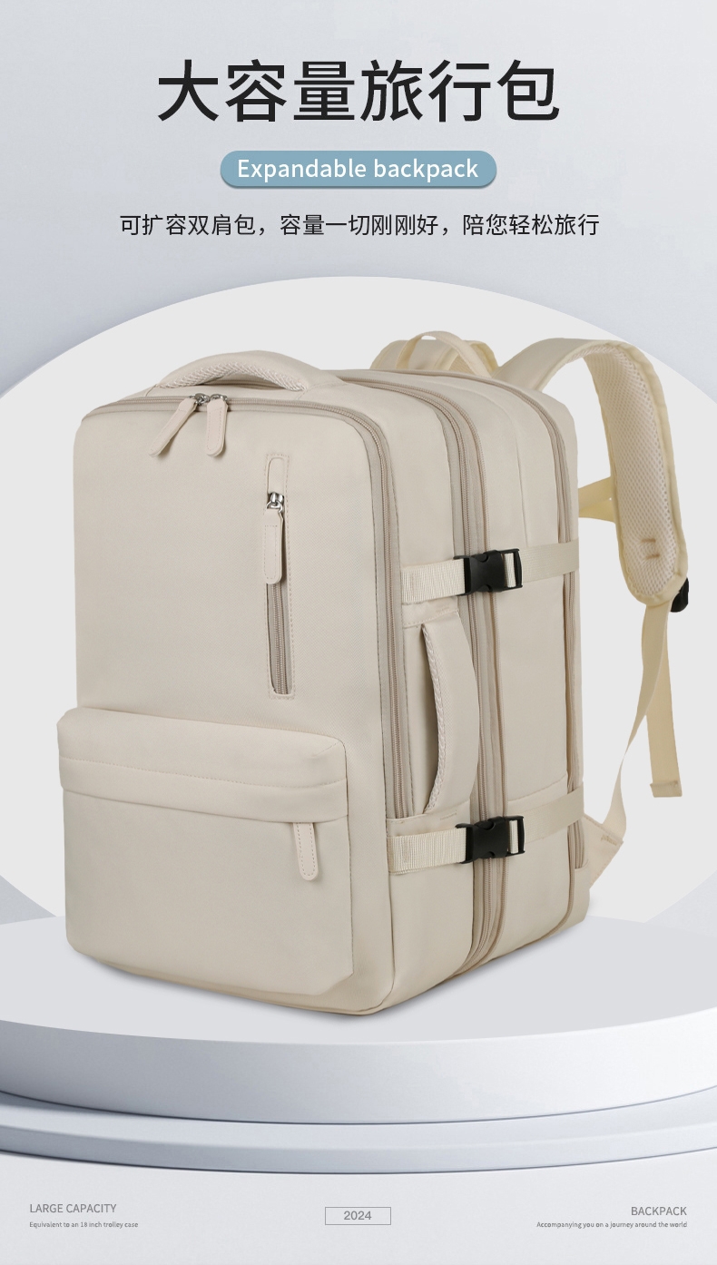 时尚、简约、人性化原创设计; 大容量多层次收纳,旅行更畅快;人体工学背带结构,透气、舒适