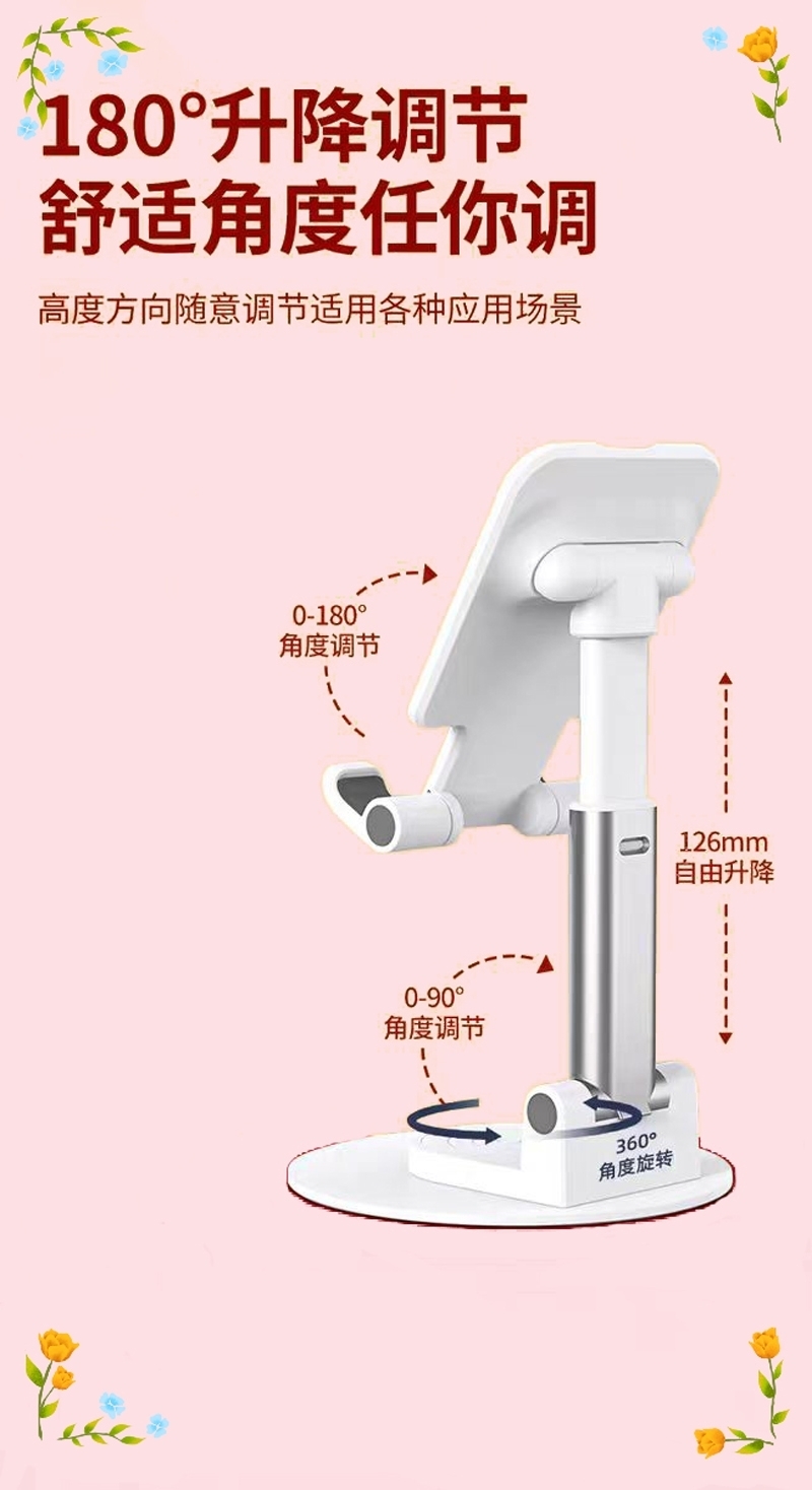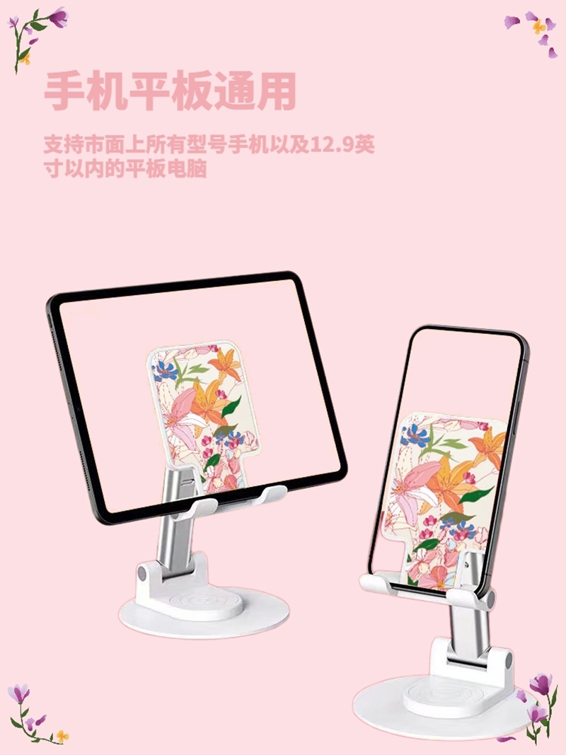 旋转折叠手机支架,手机平板都适用;适用:家用/办公/直播/游戏/观影追剧等;可定制LOGO