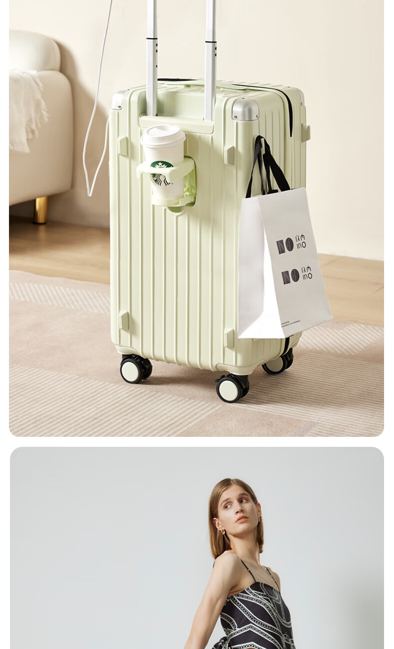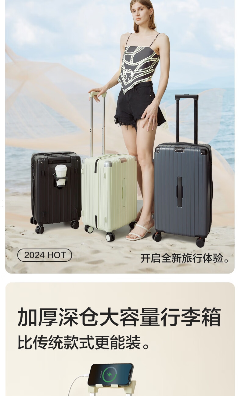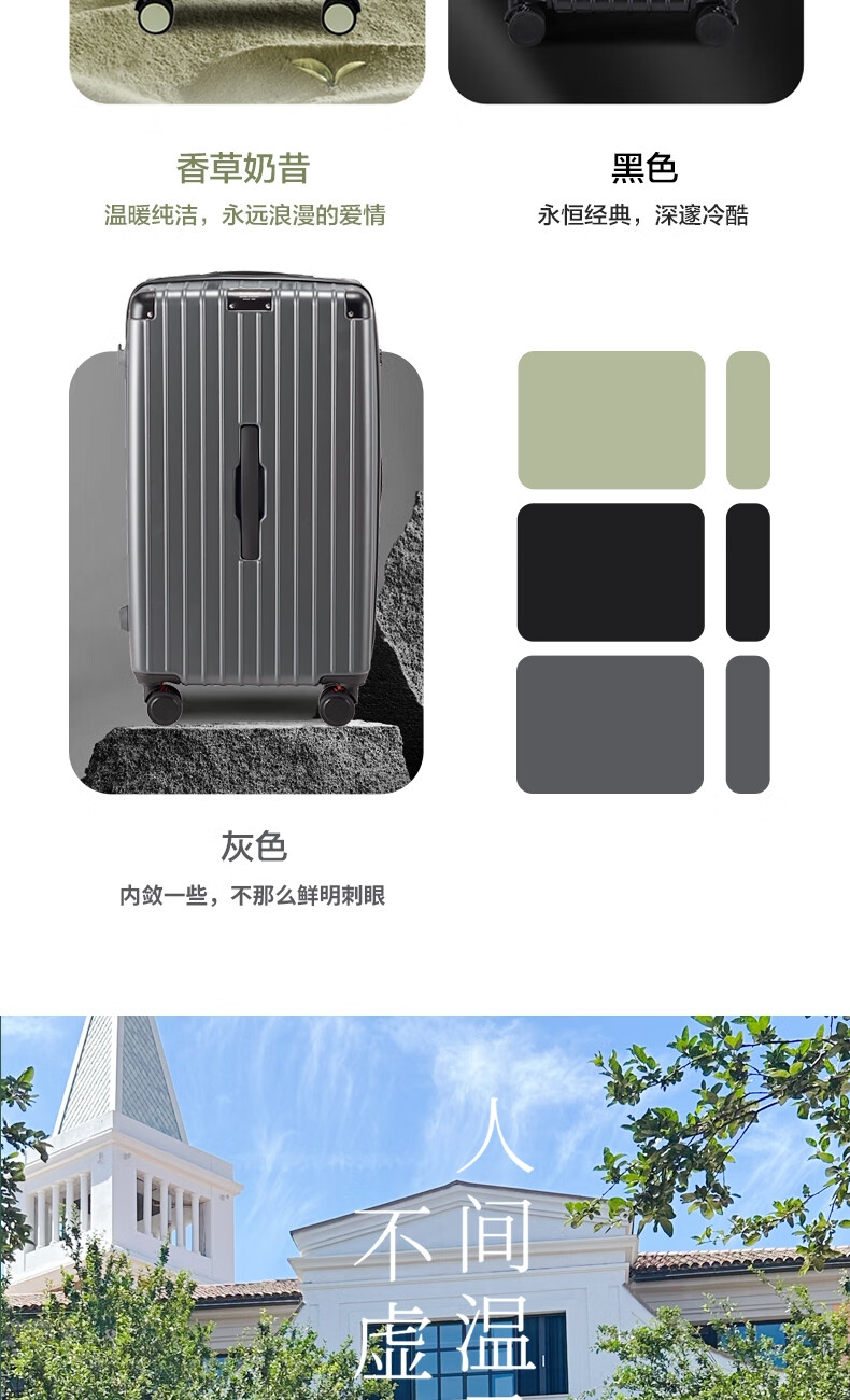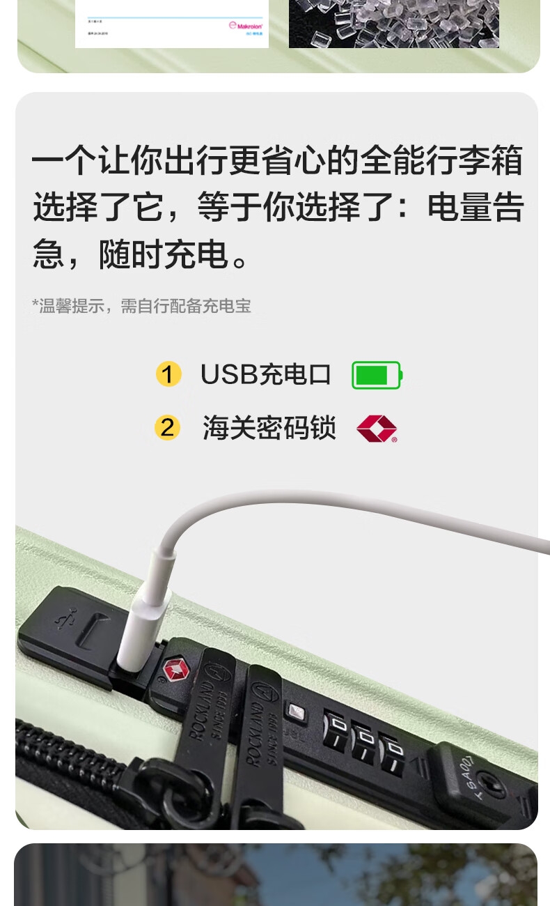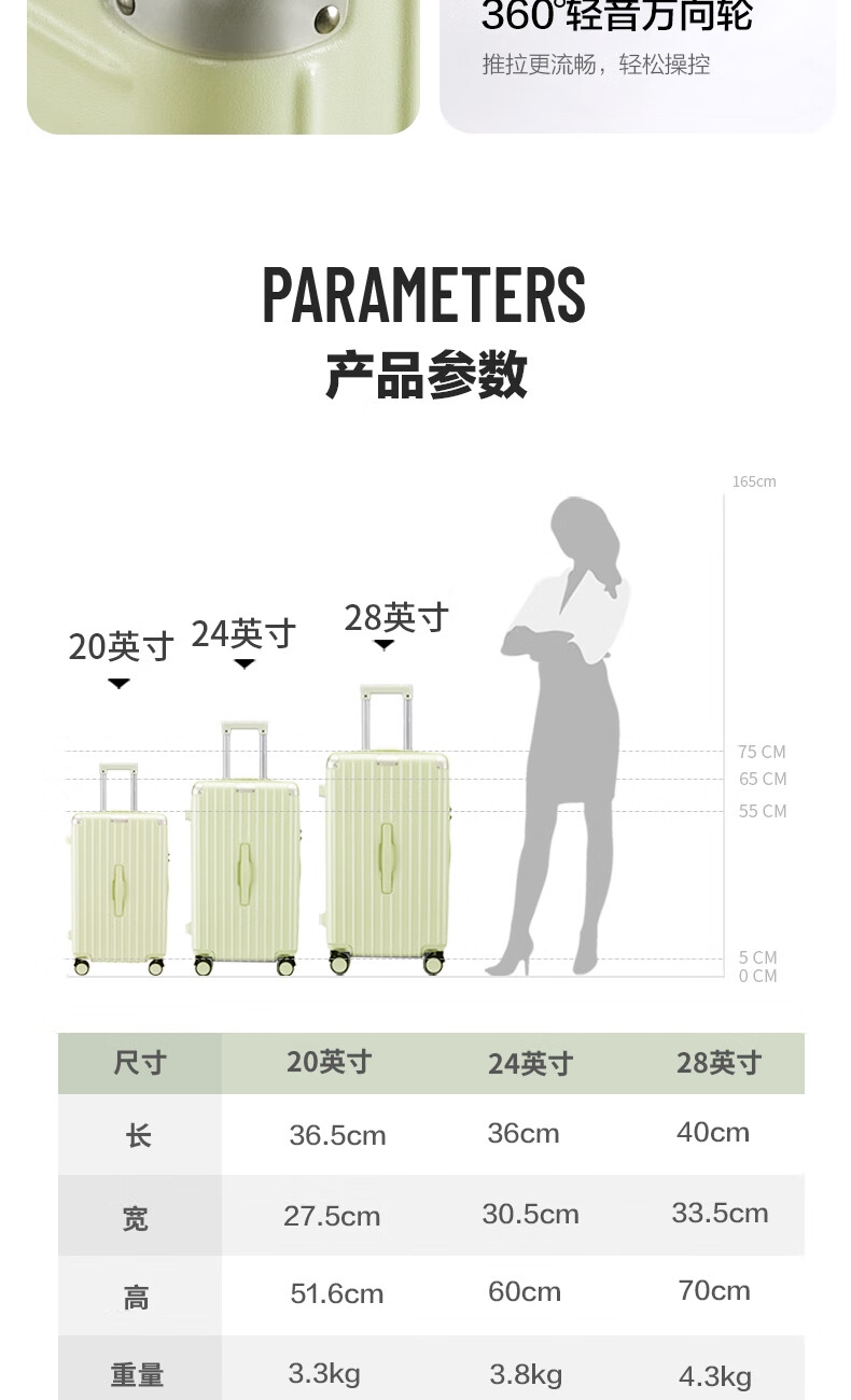 优质科思创PC材质箱体 三层高强防护材质,有效回弹;1mm加厚铝合金拉杆,抽拉顺滑;双设计密码锁,安全出行更放心