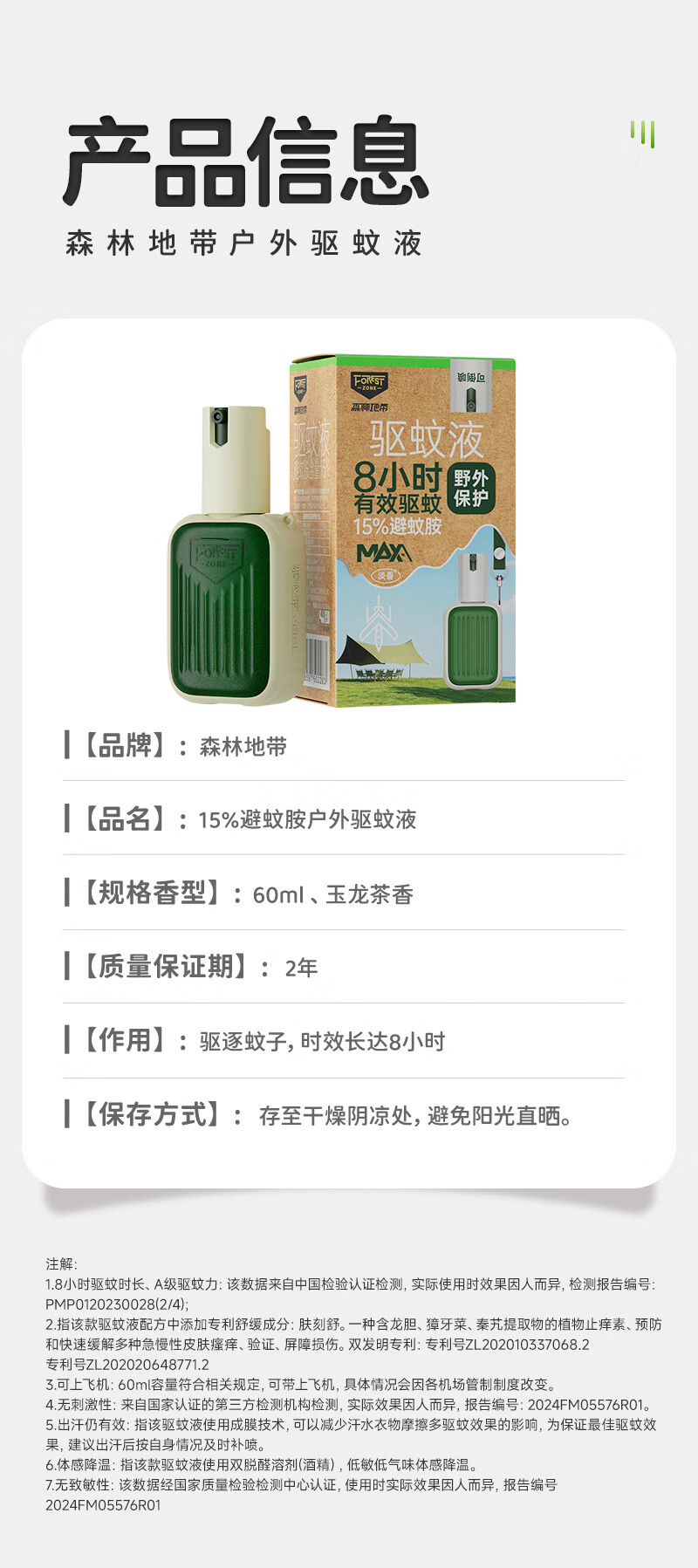 森林地带 15%避蚊胺户外驱蚊液60ml2283