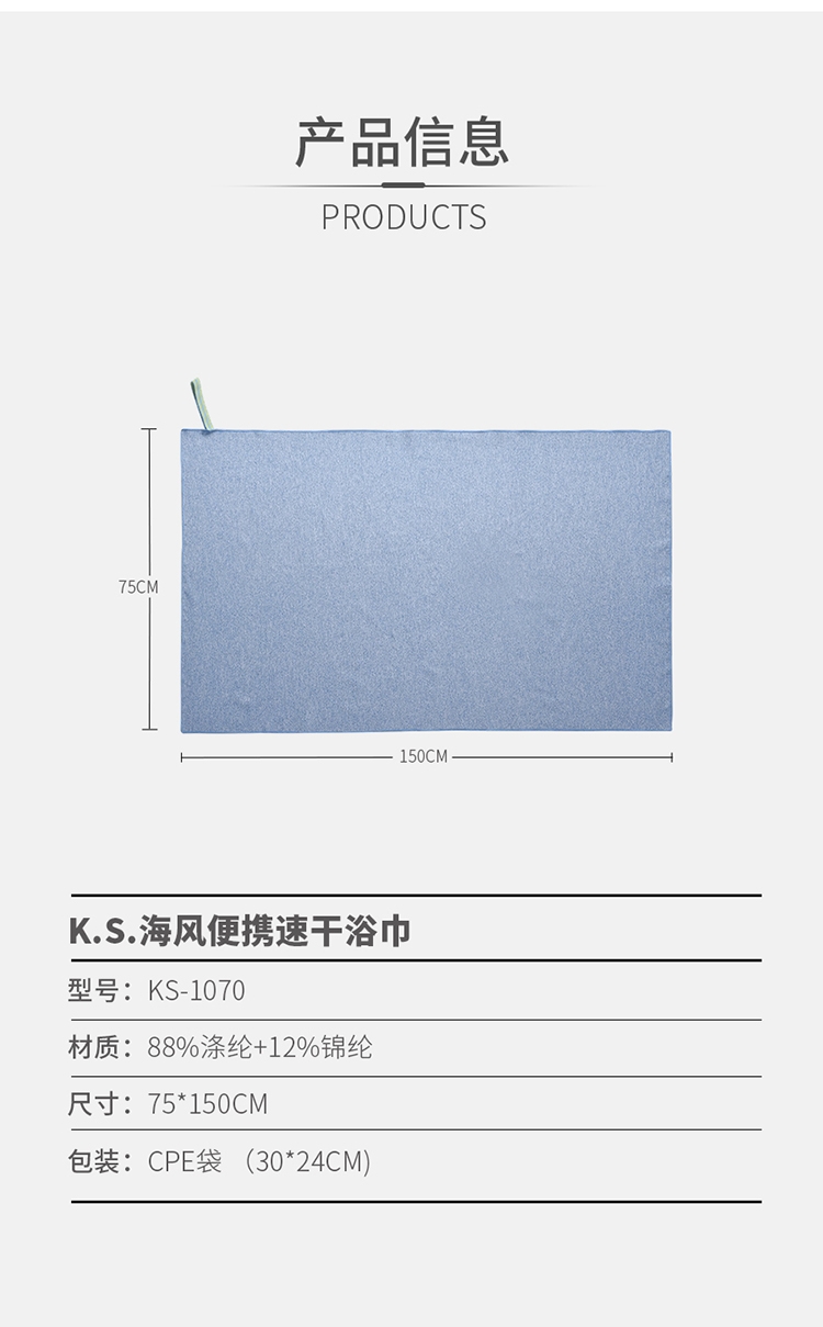 K.S. 海风便携速干浴巾KS-1070