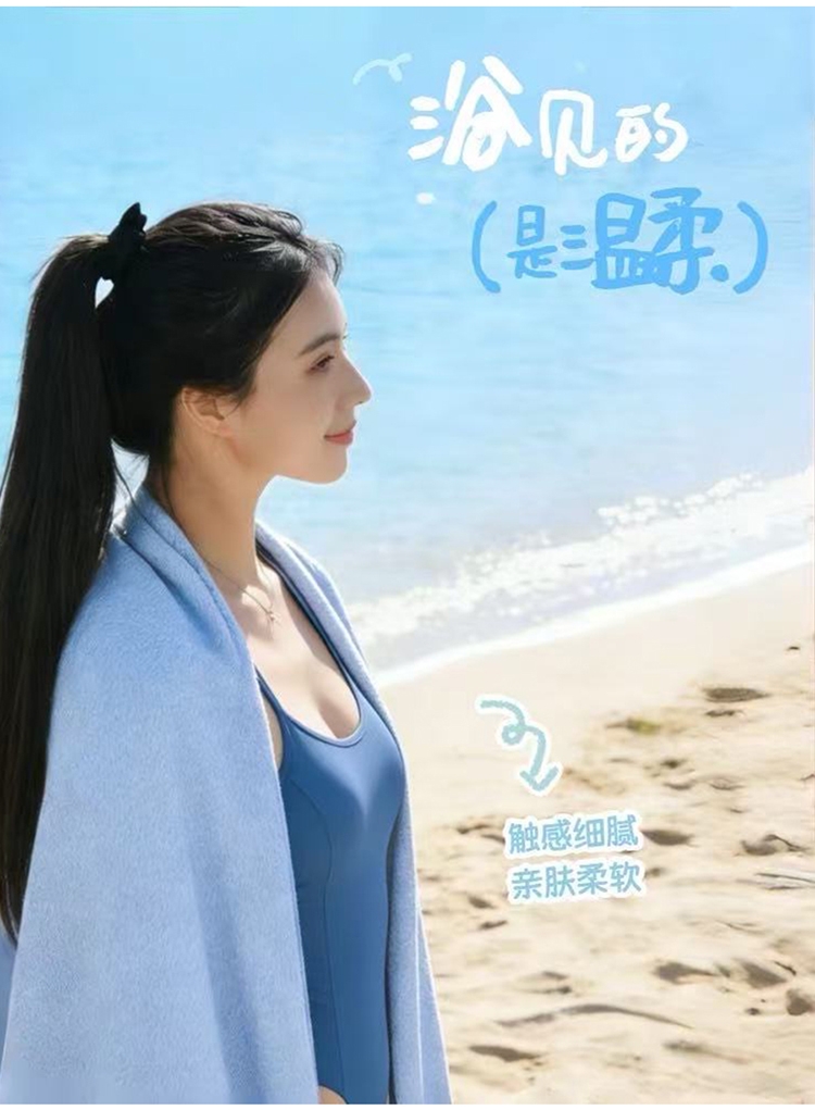 一擦即干,一秒干爽,轻装出行;超大尺寸 ,覆盖全身;多场景适用 ,游泳、出差、健身、海滩全搞定