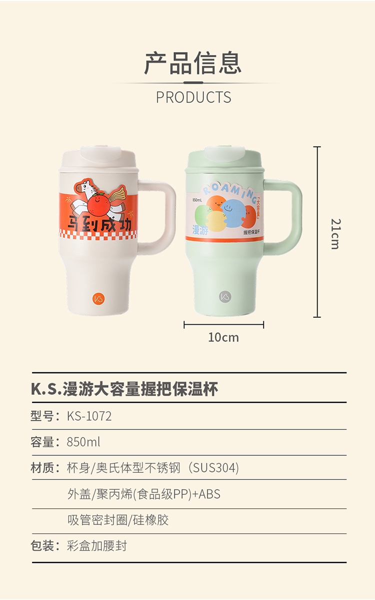 K.S. 漫游大容量握把保温杯KS-1072
