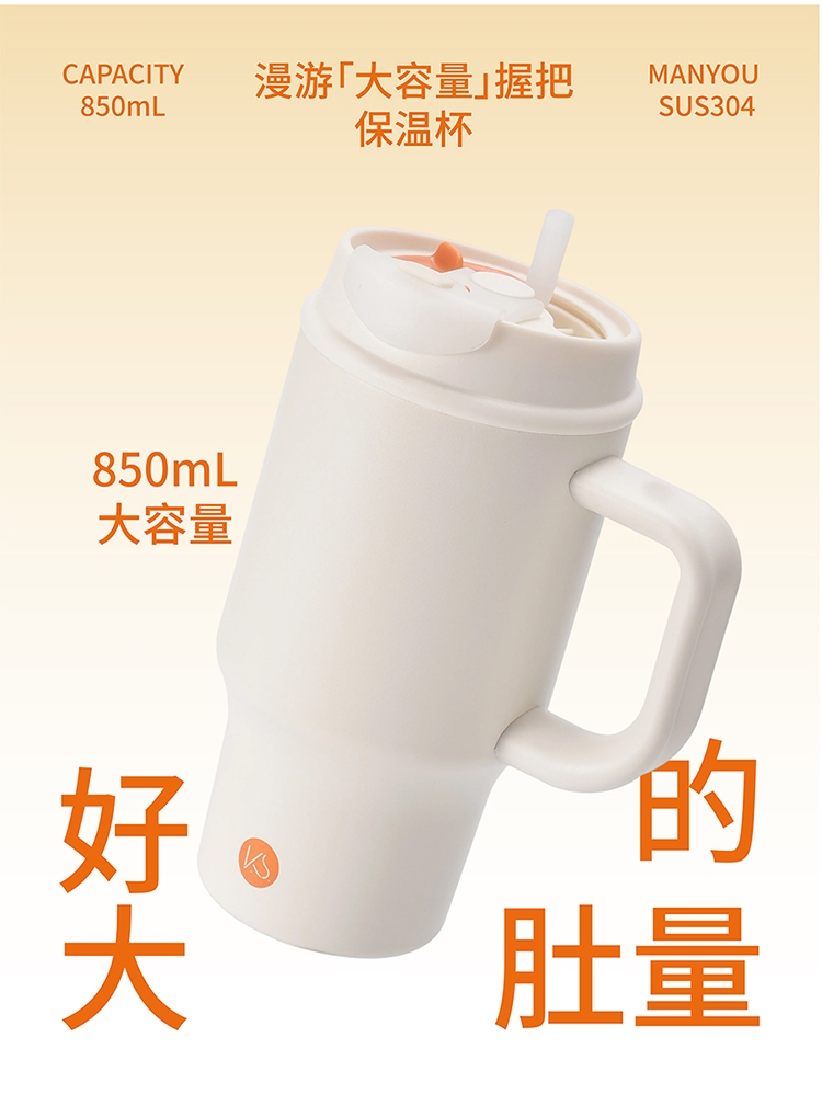 850ml大容量,充分满足每日饮水需求。;304不锈钢内胆,整日长效保温。;创新隐藏式吸管与密闭直饮口双饮设计,随心切换
