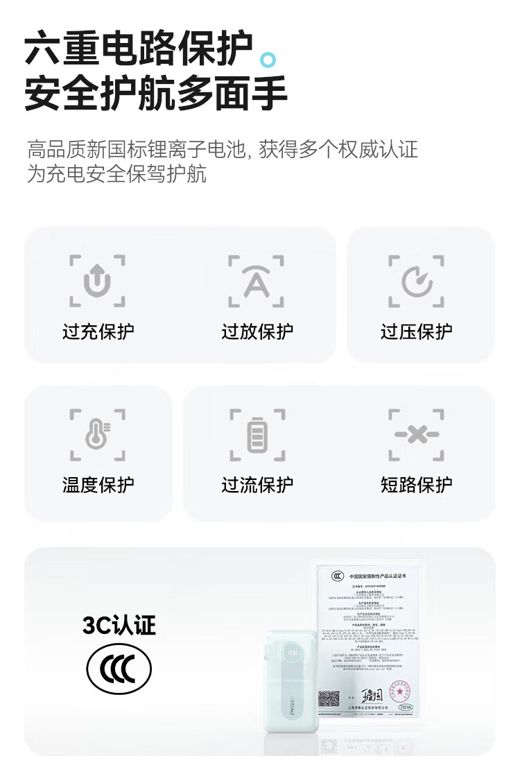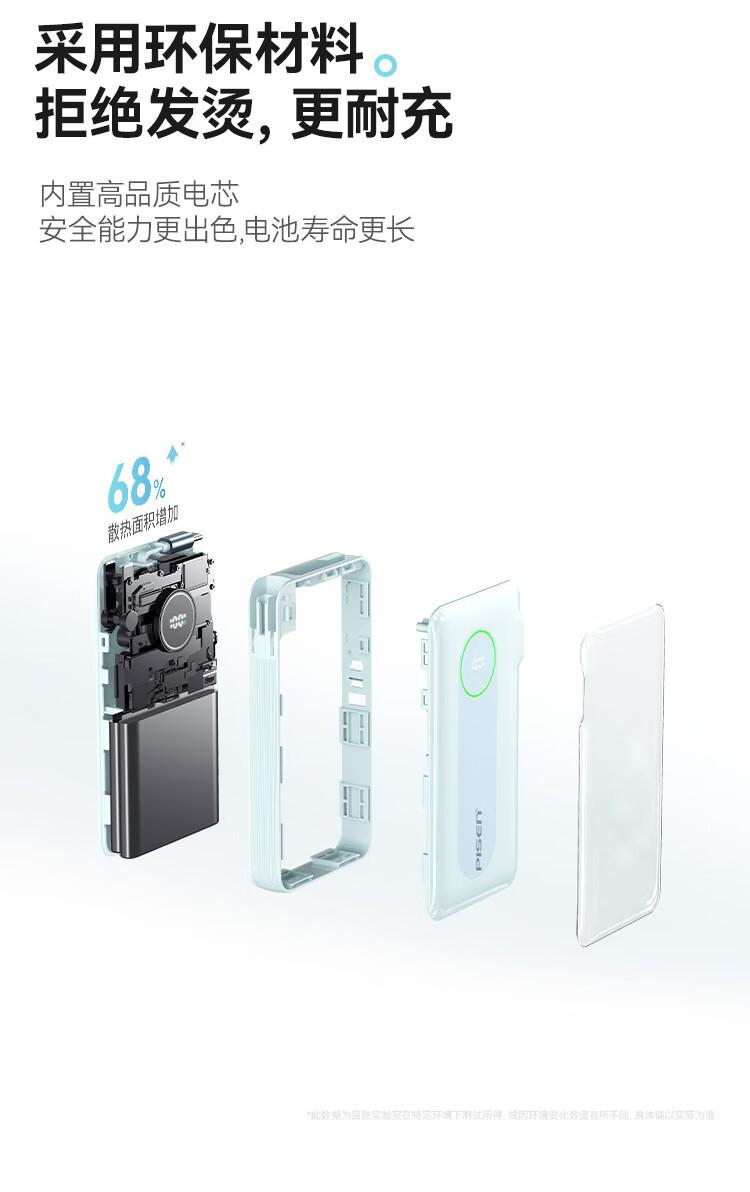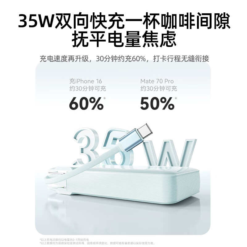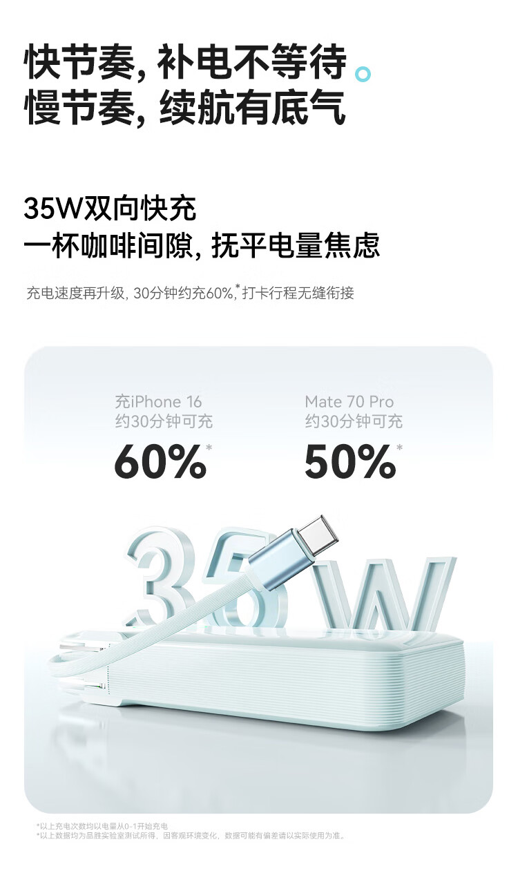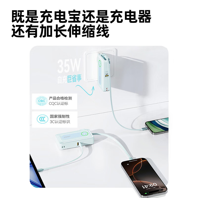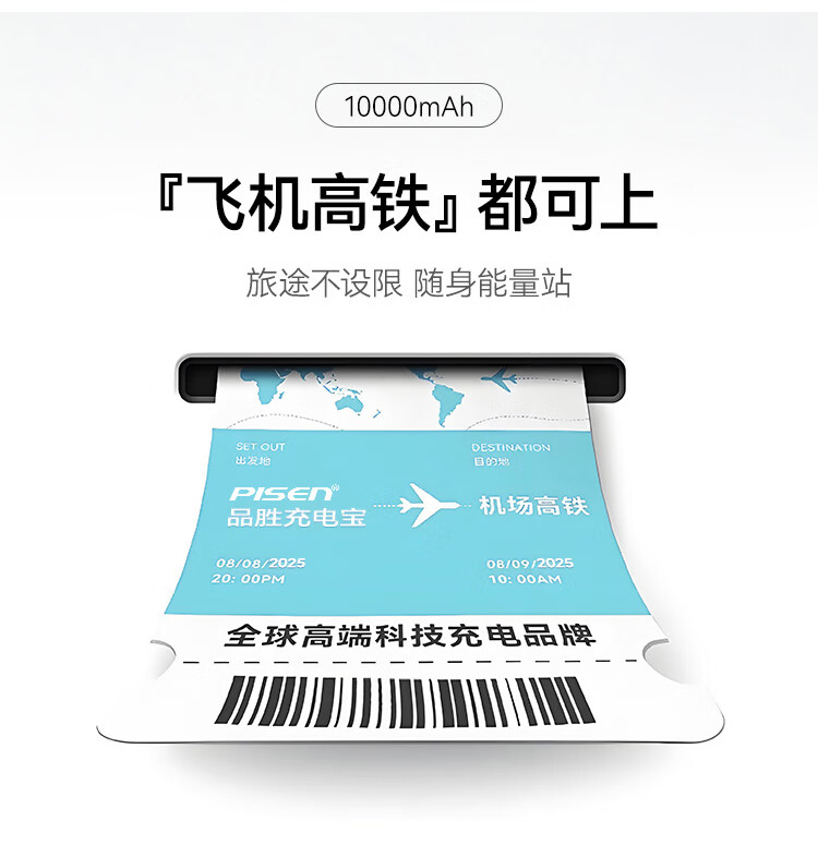 充电器+充电宝二合一,一机双用;时尚优雅设计,折叠插脚;10000mAh大容量,无惧断电,足额实标