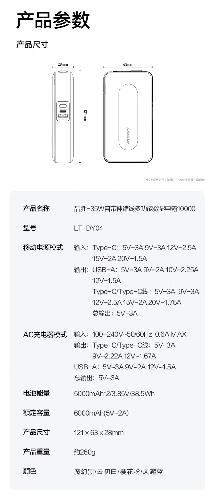 品胜 充电宝自带C线10000mAhLT-DY04