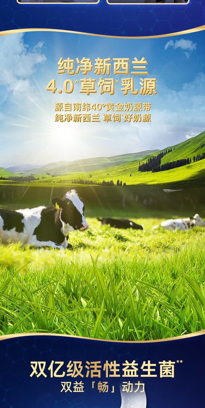 双益合力 菌衡升级;100%牛乳钙源+ 温和易吸收;外观时尚,独立小勺取用方便快捷