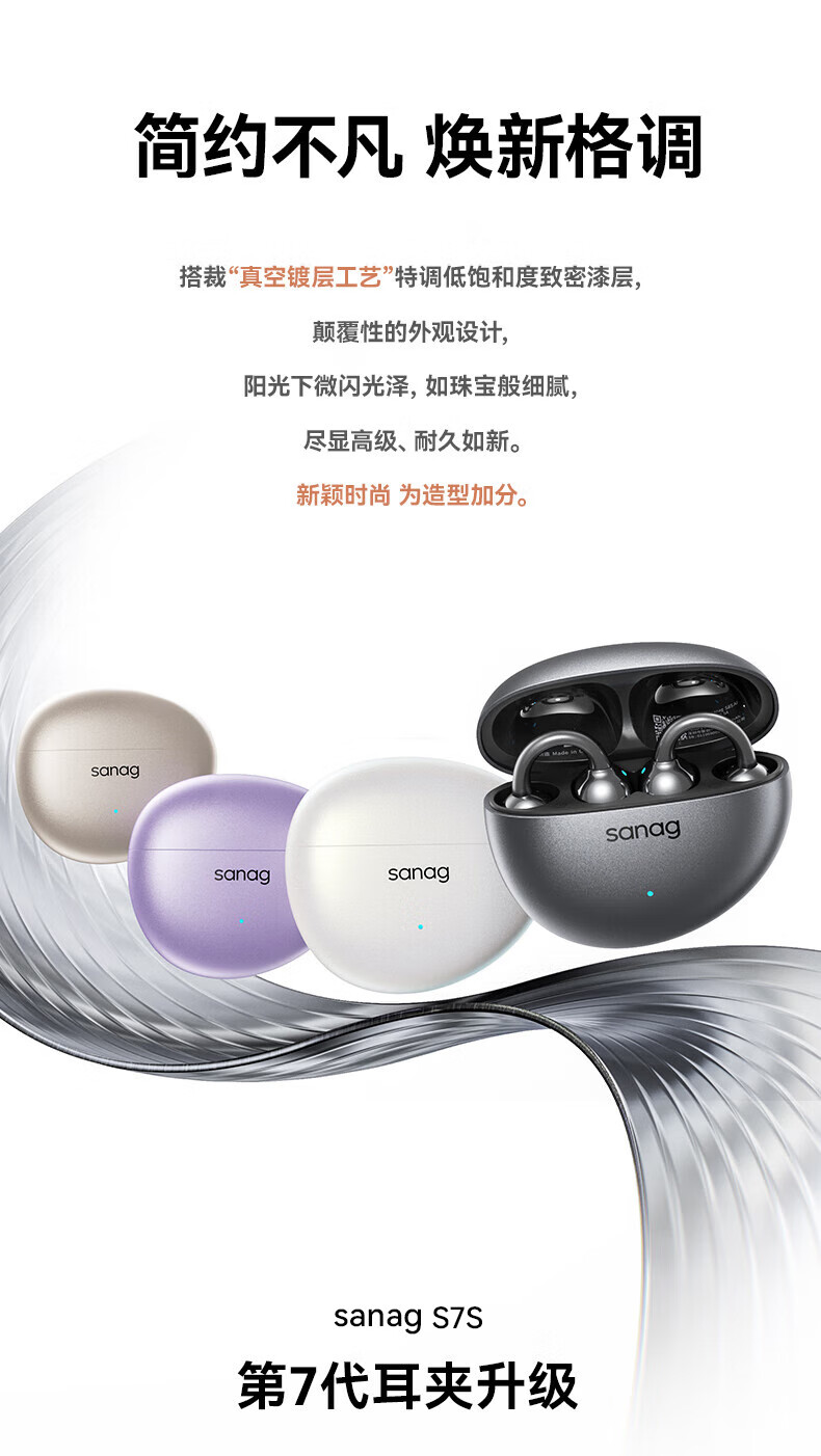 sanag塞那 骨传导耳夹式蓝牙耳机S7S AI